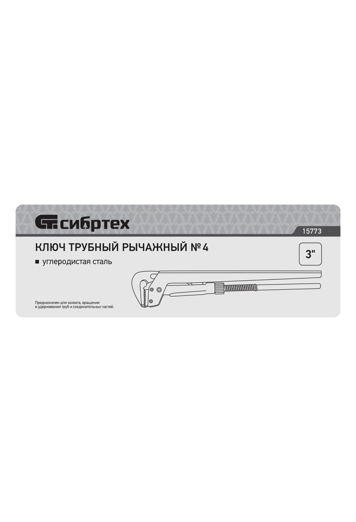 Кованый трубный рычажный ключ Сибртех №4 15773, тип «L», используется для захвата и вращения труб диаметром 3", а также других деталей со специальным профилем и без него. Рычажный механизм увеличивает рабочее усилие, снижая нагрузку на руки мастера. Инструмент рассчитан на бытовое и профессиональное применение.