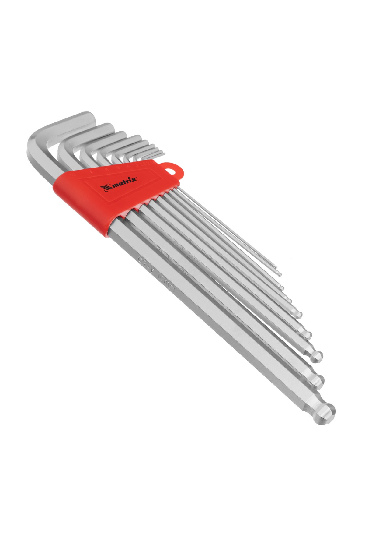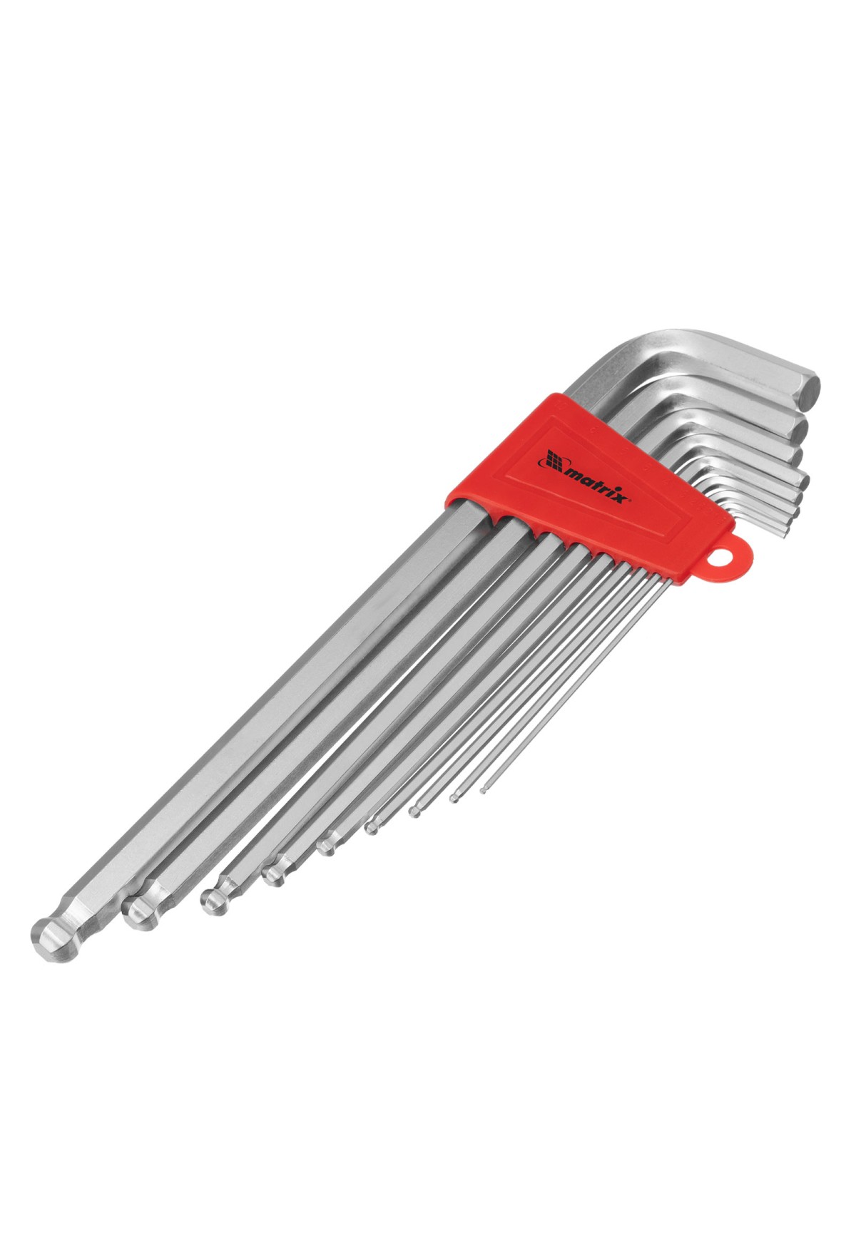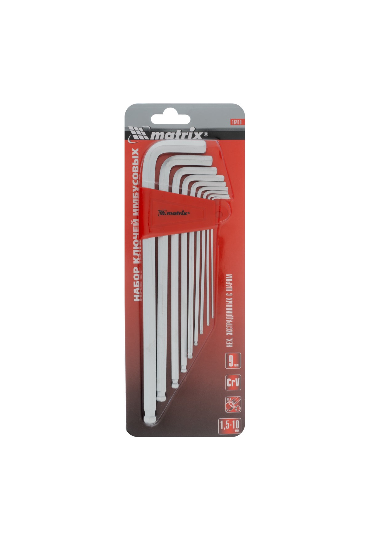 Технические характеристики Набор ключей имбусовых HEX, 1.5-10 мм, CrV, 9 шт, экстра-длинные, c шаром, сатин Matrix