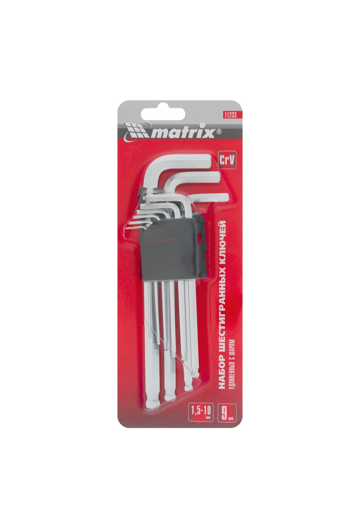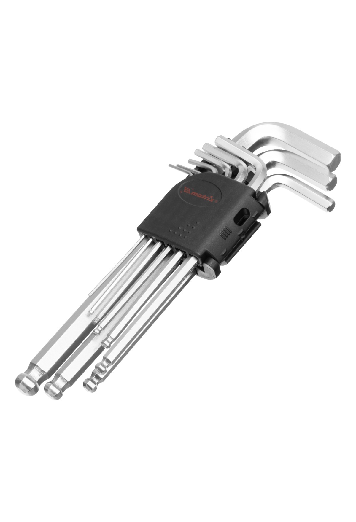 Набор ключей имбусовых HEX, 1.5-10 мм, CrV, 9 шт, удлиненные, сатин, с шаром Matrix