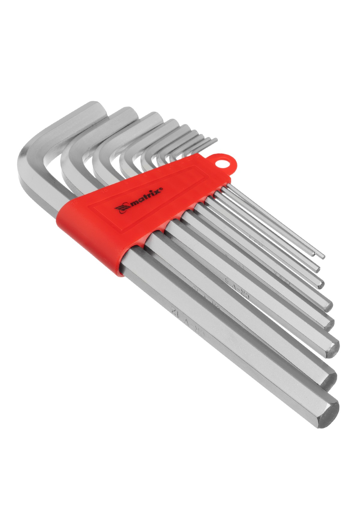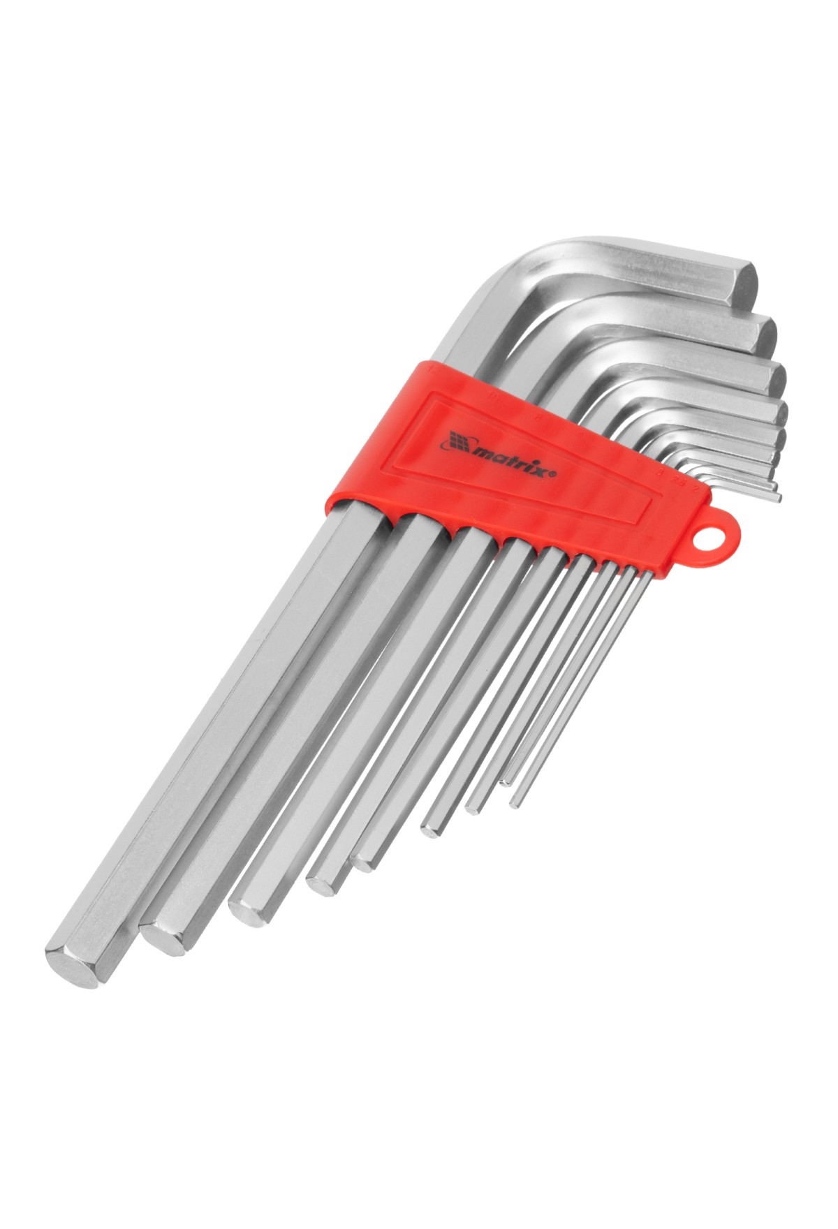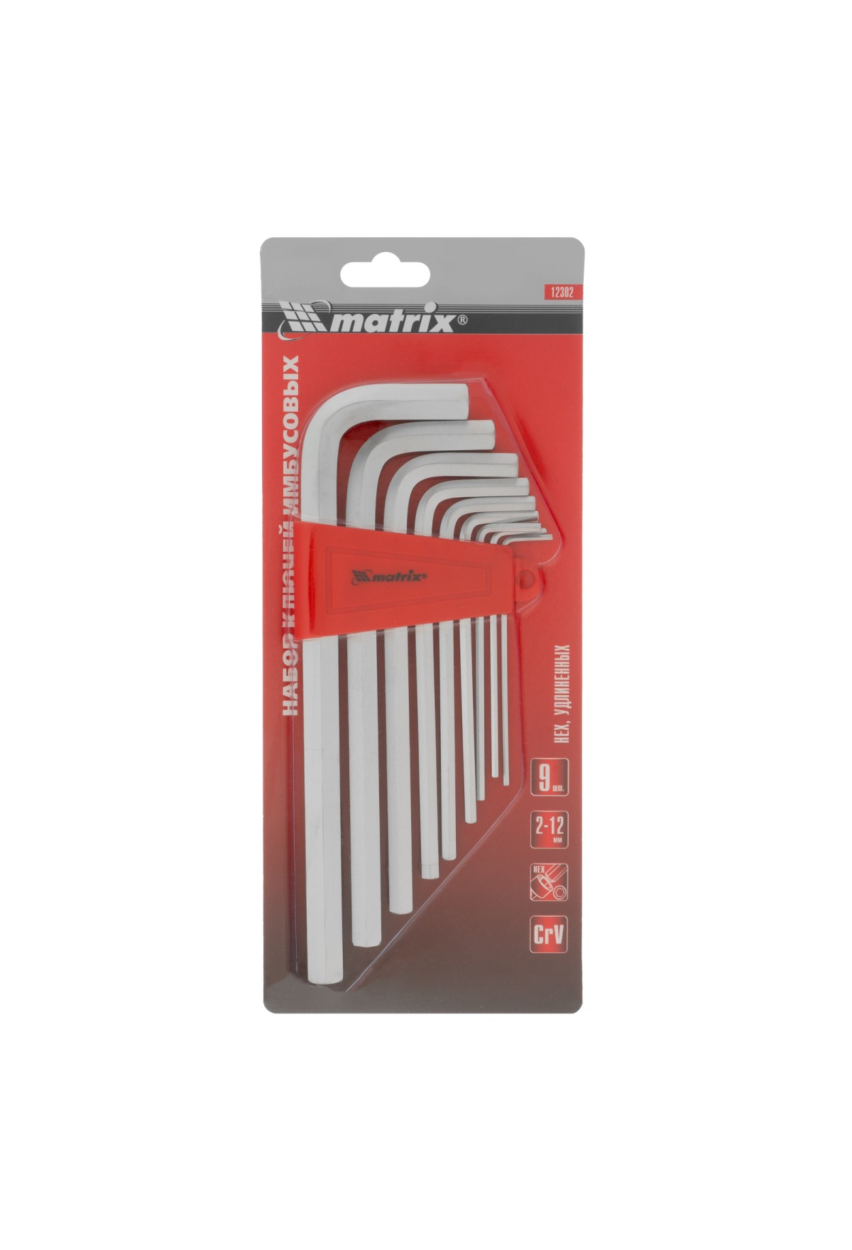 Технические характеристики Набор ключей имбусовых HEX, 2-12 мм, CrV, 9 шт, удлиненныее с сатинированным покрытием Matrix