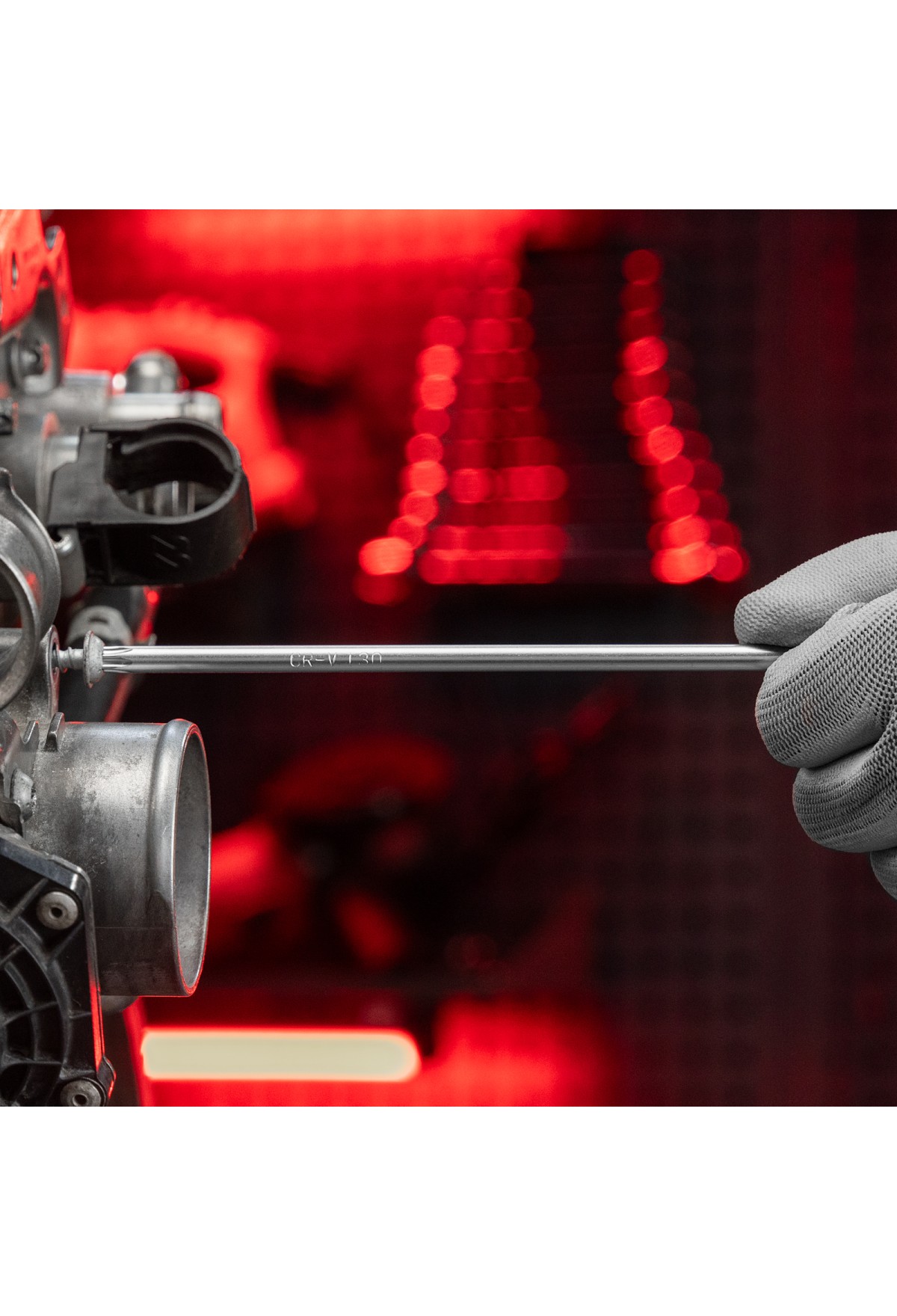 Набор Matrix 12307, включающий 9 экстра-длинных имбусовых сатинированных ключей TORX из стали CrV, используется для работ с крепежом Т10-Т50, имеющим звездообразный профиль. Пригодится частному мастеру для ремонта бытовой техники и электроприборов. Экстра-длинные ключи удобны для работы в труднодоступных местах.