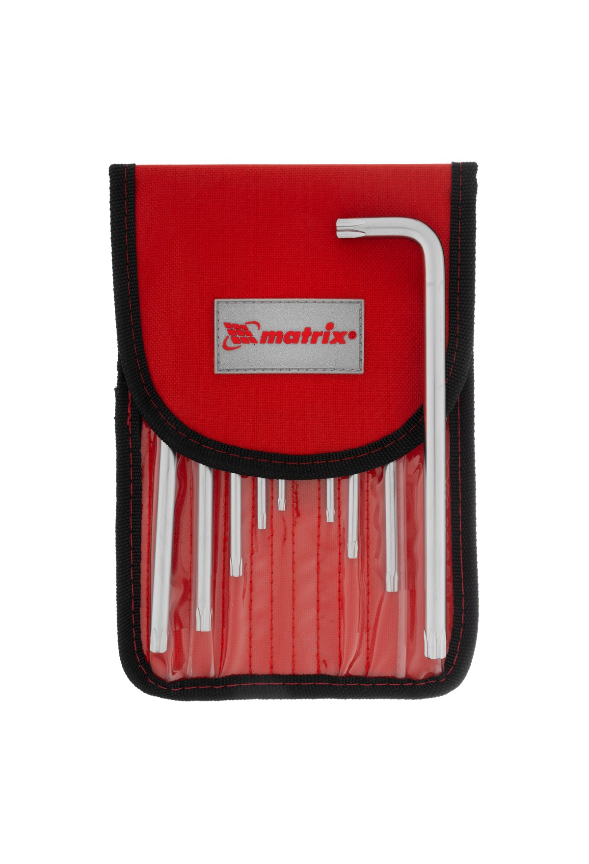 Набор Matrix 12313 в чехле включает 9 удлиненных сатинированных имбусовых ключей размером Т10-Т50, из стали CrV, и используется для монтажа и демонтажа крепежных элементов с профилем TORX-TORX Tampered. Набор пригодится для домашнего применения и профессиональных работ по ремонту бытовой и электронной техники. Ключи Г-образной формы удобны для работы с большим усилием и в труднодоступных местах.