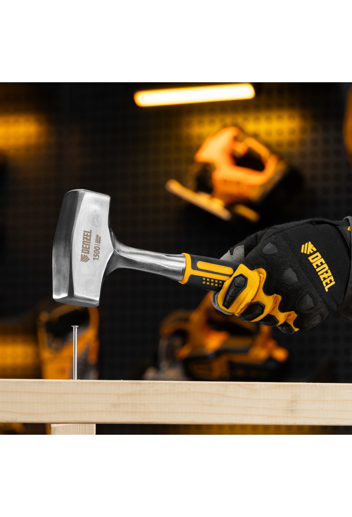 Цельнометаллическая кувалда Denzel 11012 с рабочей частью весом 1,5 кг и двухкомпонентной рукояткой предназначена для нанесения несильных, но точных ударов. Позволяет забивать большие гвозди, колья, может использоваться для сгибания и придания формы металлическим деталям. Используется для проведения слесарных, строительных и кузовных работ, подойдет также и для бытового применения.
