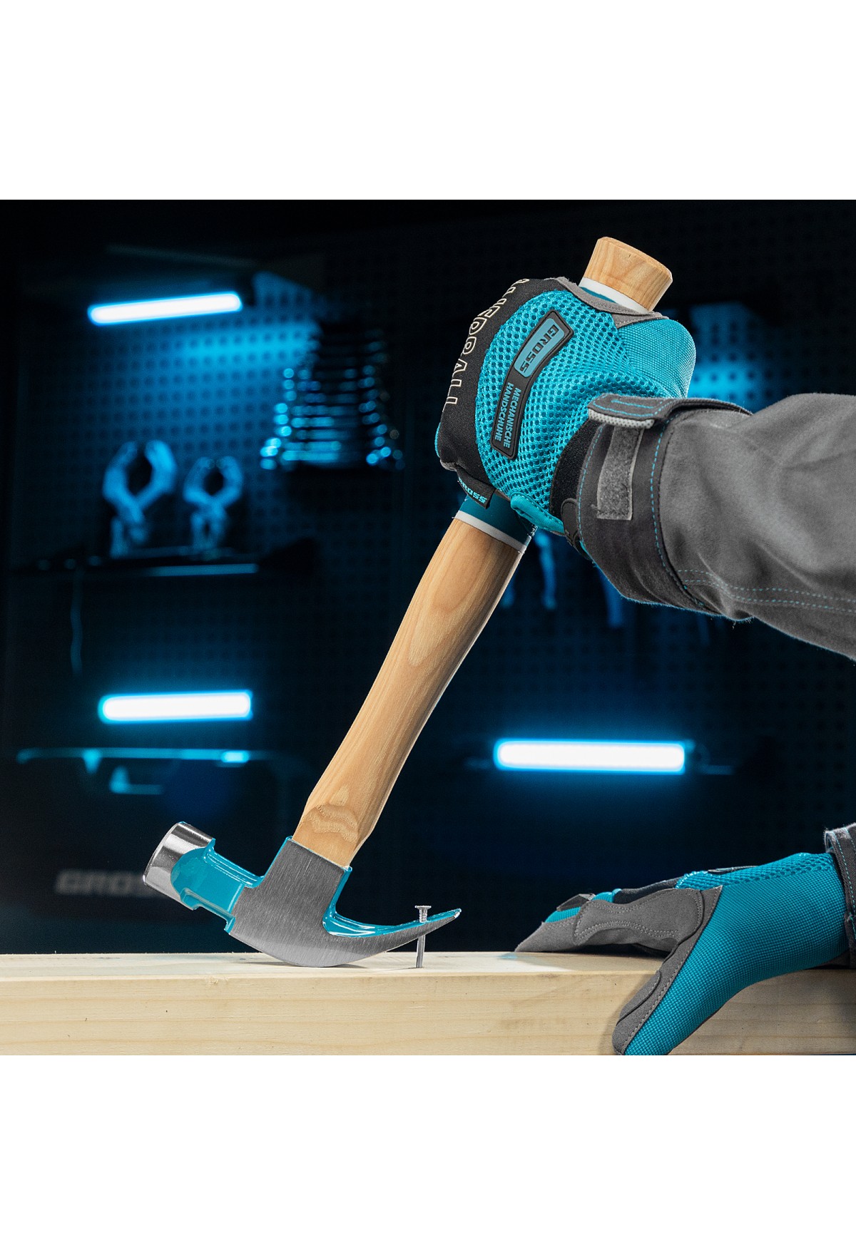 Молоток-гвоздодер Gross American Hickory 10415 длиной 355 мм, с рабочей головой весом 450 г, с магнитом и обрезиненной рукояткой, предназначен для забивания крепежных элементов и извлечения неудачно вбитых гвоздей. Носок, загнутый под углом 45°, позволяет легко вытянуть гвоздь. Благодаря двум прорезям — мини и стандартной — молоток подходит для работы с крепежом разного размера. Края гвоздодера можно затачивать для лучшего захвата шляпки гвоздя. Инструмент будет полезен во время отделочных работ, при сборке мебели, пригодится также дома, на даче или в гараже.