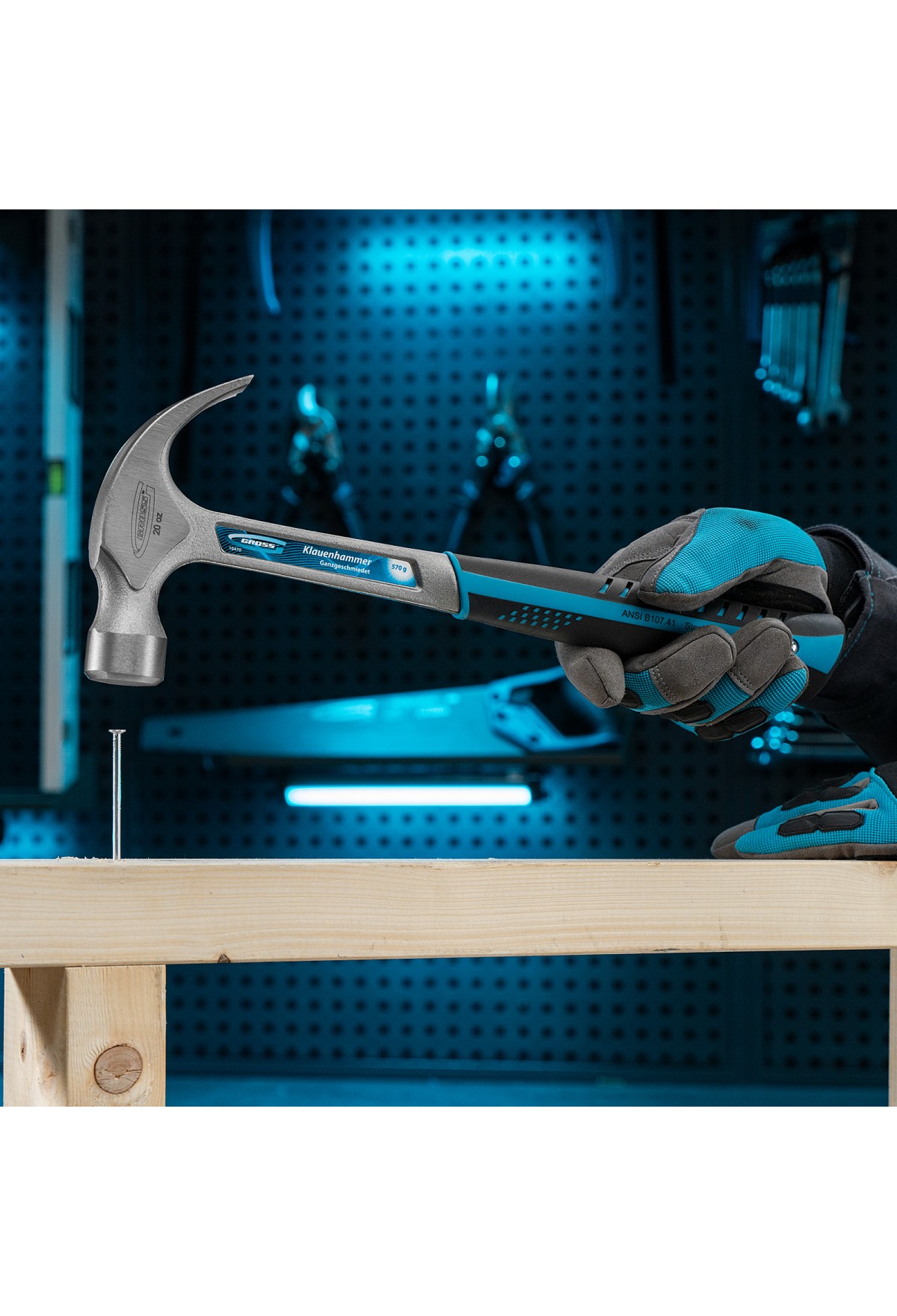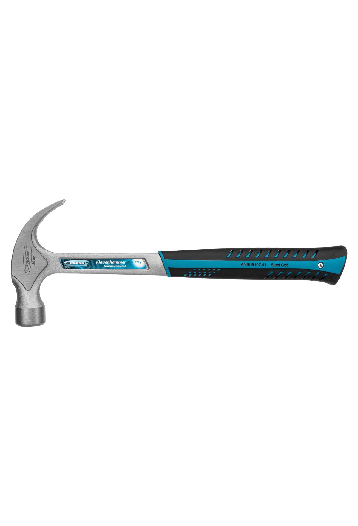 Молоток-гвоздодер, 570 г, цельнокованый, трехкомпонентная рукоятка Gross