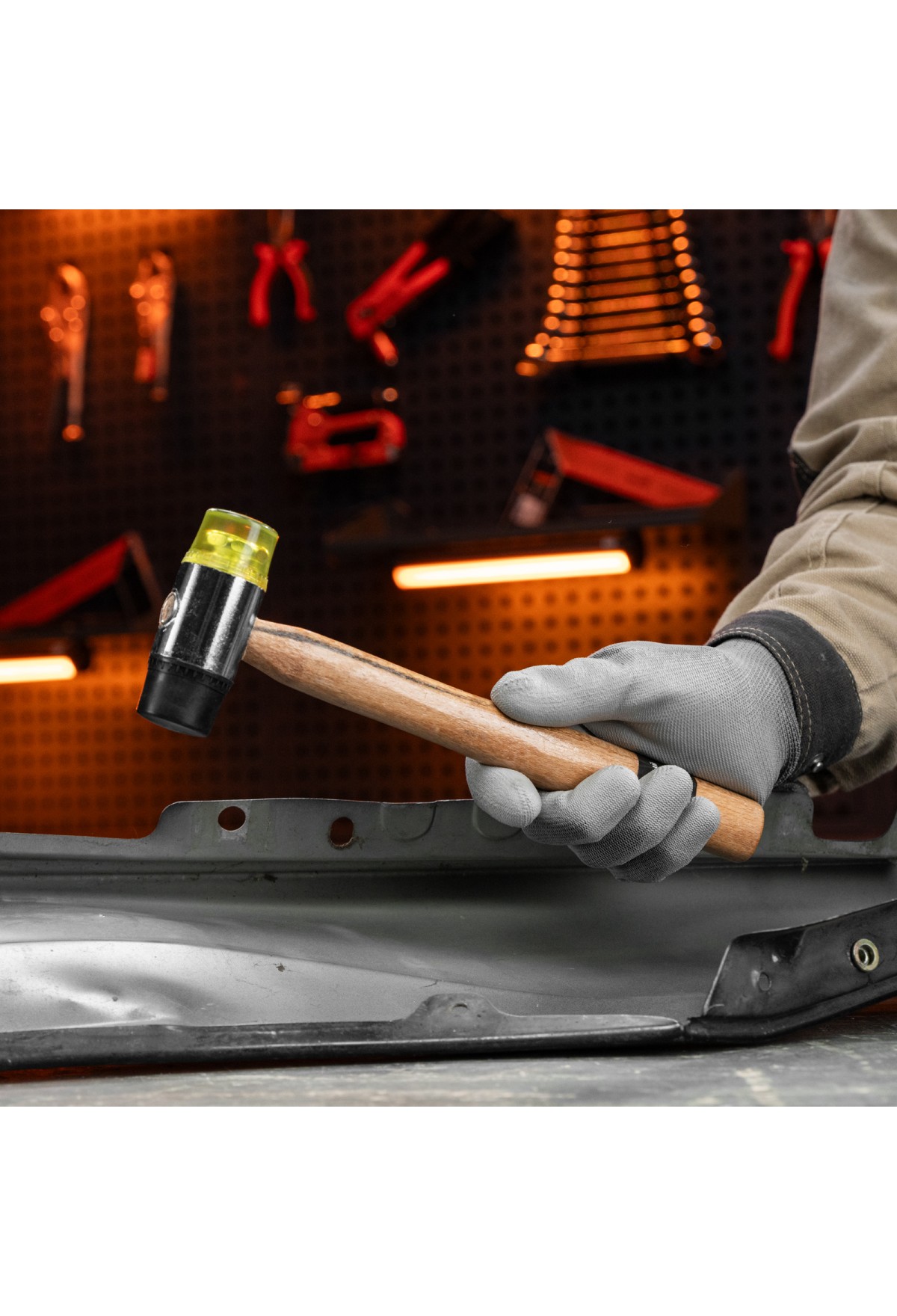 Рихтовочный молоток Sparta 108305 с бойками диаметром 35 мм, комбинированной головкой и деревянной ручкой, предназначен для выпрямления деформированного листового металла или более мягких материалов. Не повреждает поверхность при ударах. Будет полезен в слесарной мастерской, в гараже, а также дома или на даче.