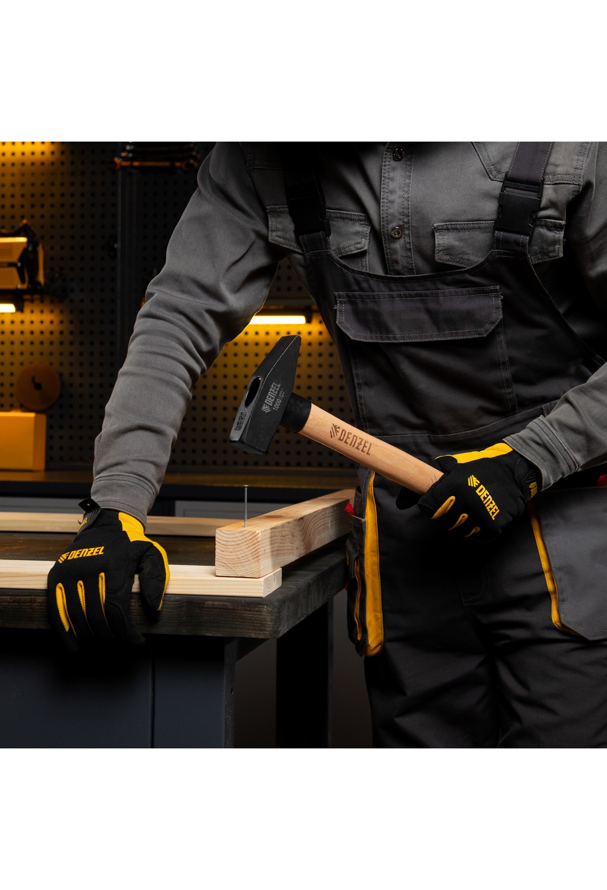 Слесарный молоток Denzel 10437 с квадратным кованым бойком весом 1000 г предназначен для забивания гвоздей и другого крепежа и для работы с металлическими заготовками. Инструмент применяется во время слесарных или столярных работ в быту, также будет полезен профессионалам.
