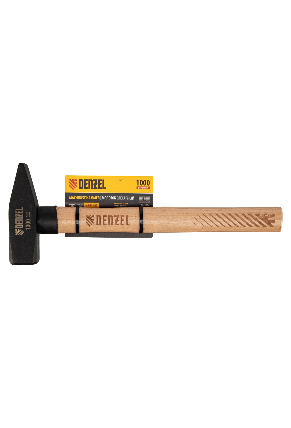 Технические характеристики Молоток слесарный, 1000 г, кованый квадратный боек, буковая рукоятка Denzel