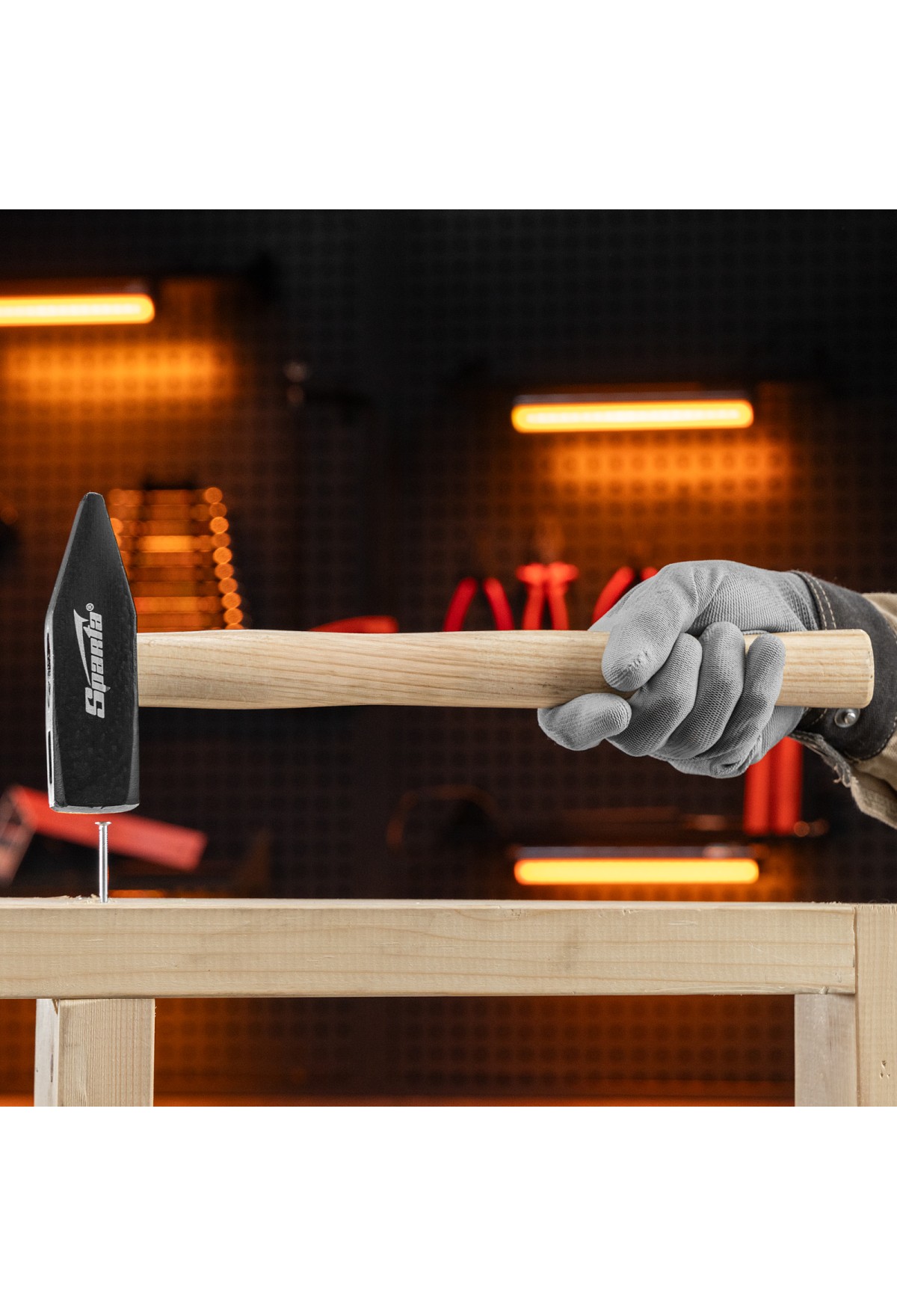 Слесарный молоток Sparta 102185 длиной 360 мм, с квадратным бойком весом 1000 г и деревянной рукояткой, предназначен для нанесения ударов при работе с металлом и забивании гвоздей. Позволяет выполнять большой объем работ с крупным крепежом. Заостренный с одного конца боек облегчает работу в труднодоступных местах. Молоток пригодится на строительной площадке, во время ремонта, а также будет полезен в домашнем хозяйстве.