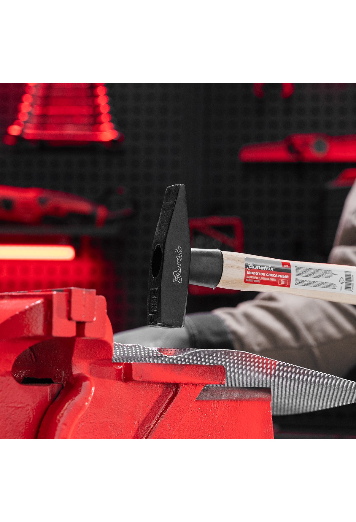 Молоток слесарный, 300 г, квадратный боек, деревянная рукоятка Matrix