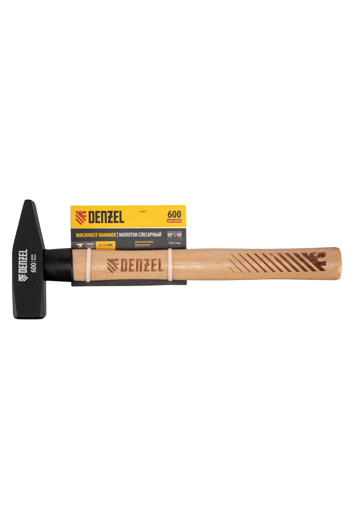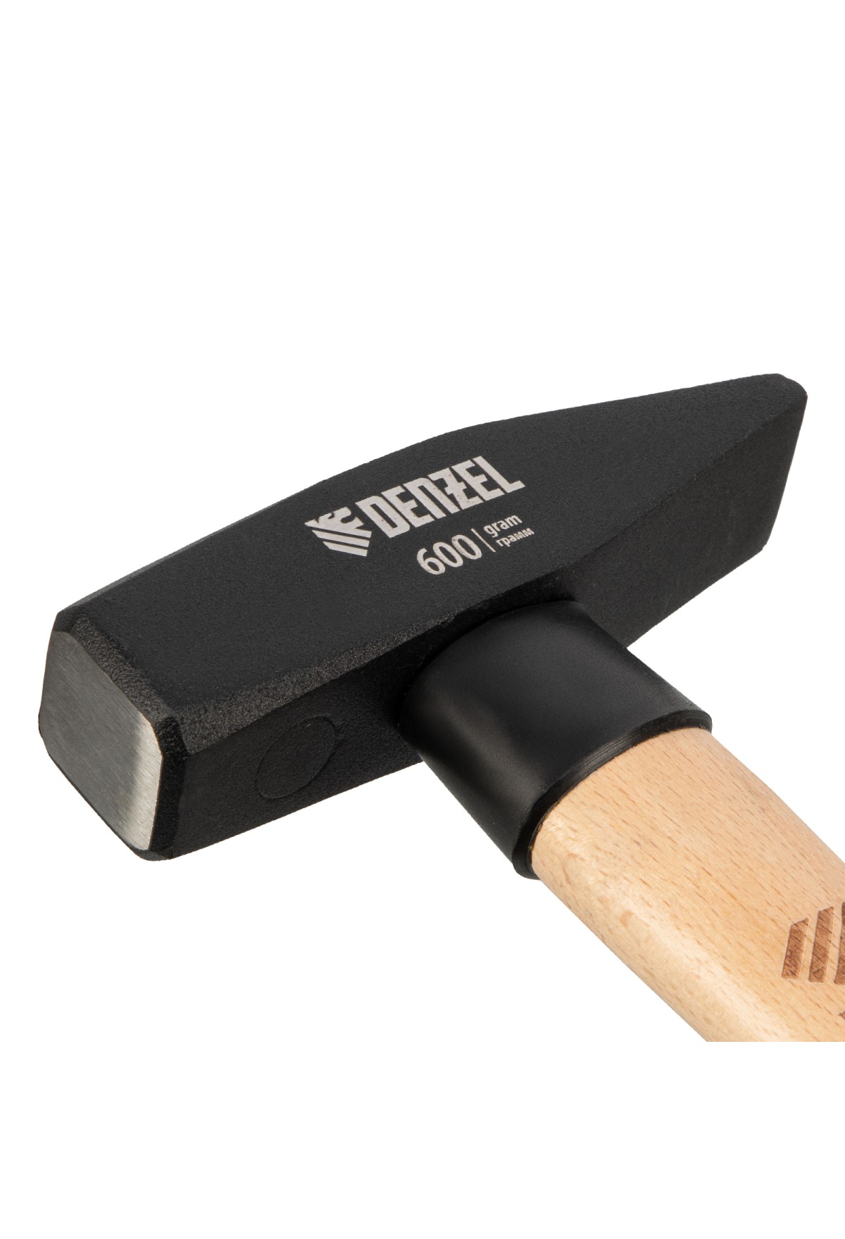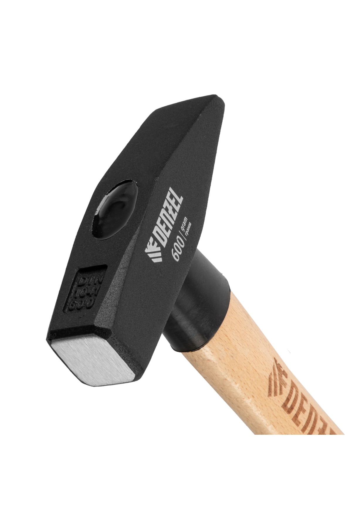 • Молоток слесарный, 600 г, кованый квадратный боек, буковая рукоятка Denzel