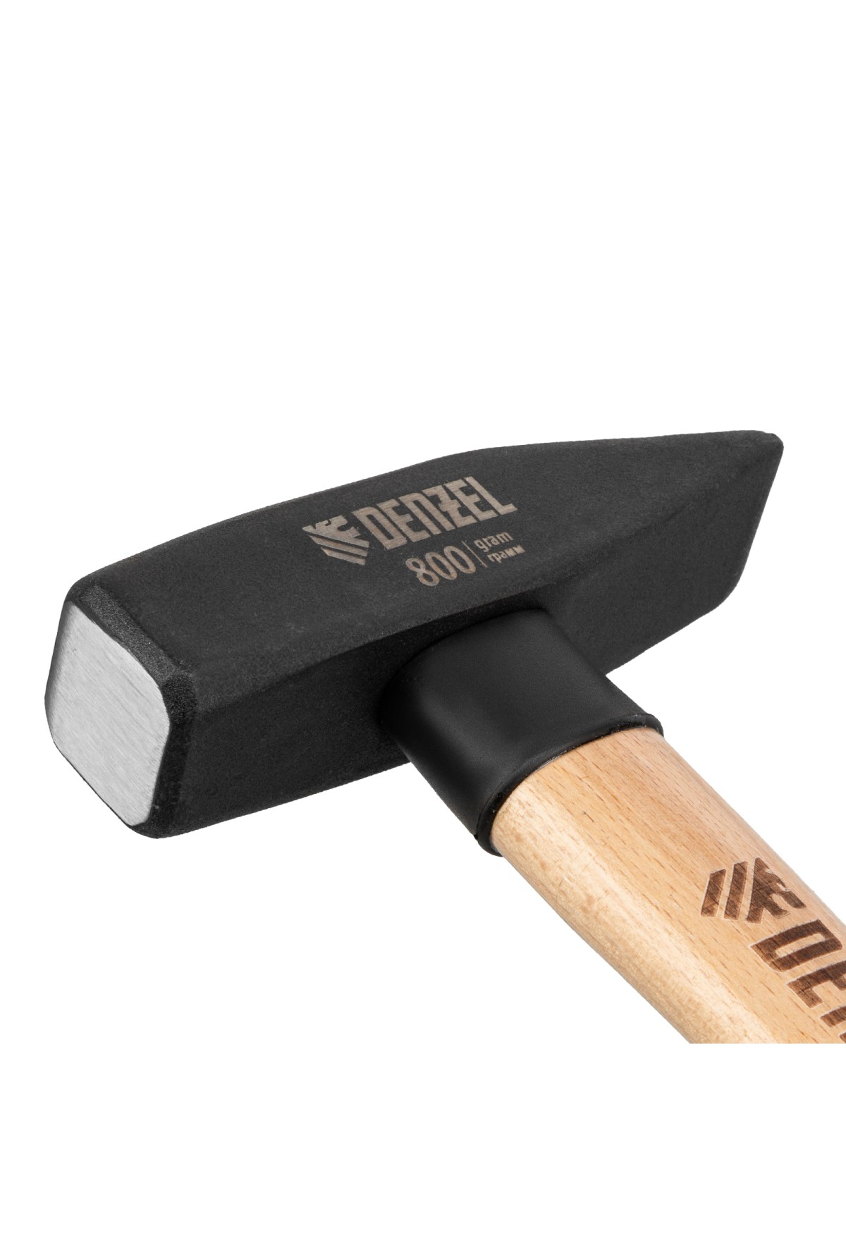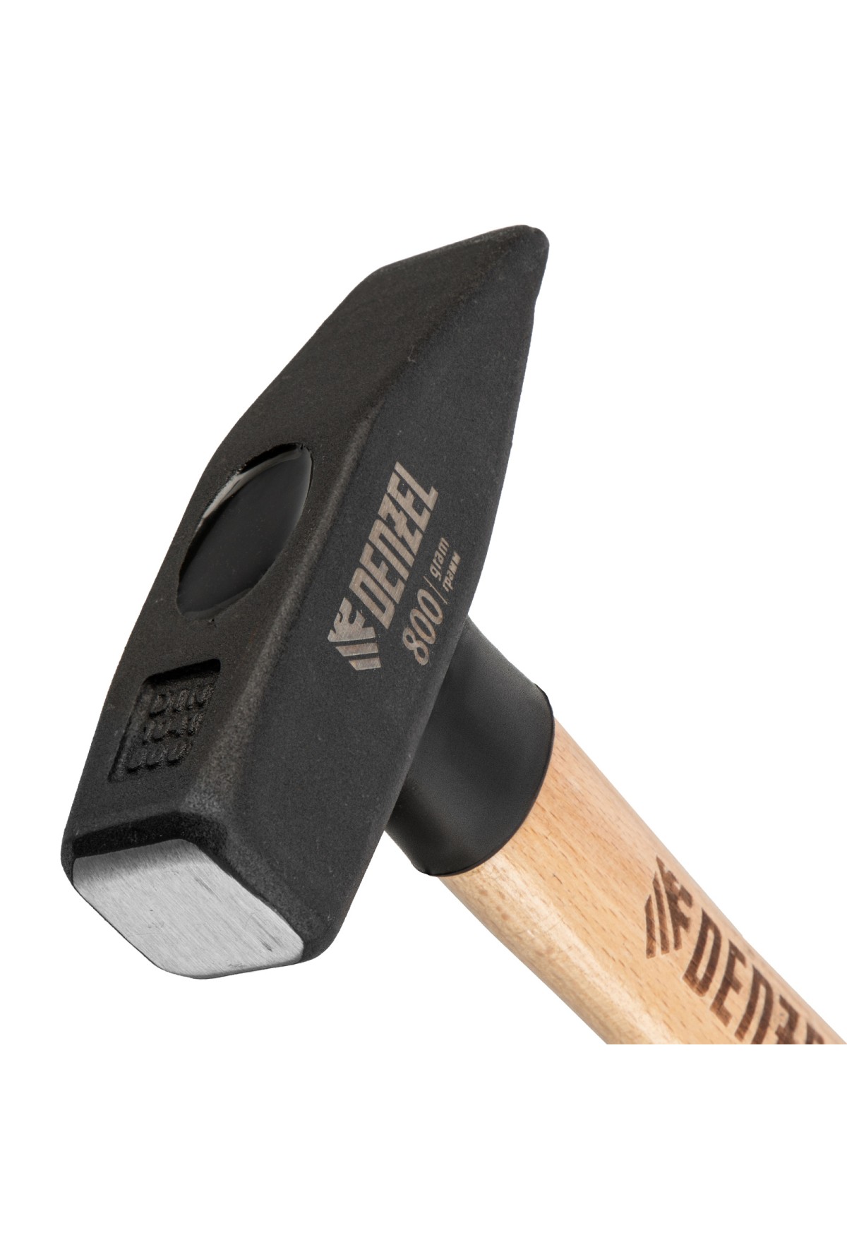 • Молоток слесарный, 800 г, кованый квадратный боек, буковая рукоятка Denzel