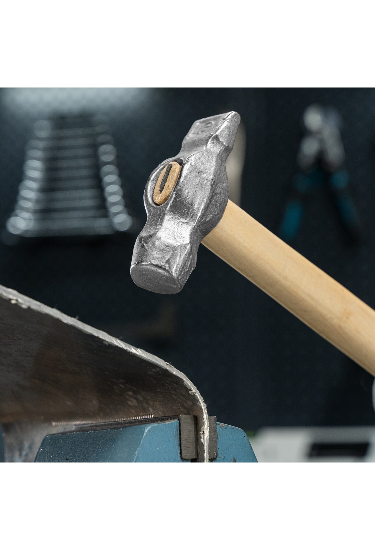 Слесарный молоток 10243 с круглым бойком весом 800 г и деревянной рукояткой предназначен для работ по металлу, а также для забивания гвоздей, дюбелей, штырей и других крепежных элементов. Утонченный с одной стороны боек позволяет наносить удары в узких местах. Инструмент может использоваться на строительной площадке, во время ремонта дома или на даче, пригодится также и в гараже.