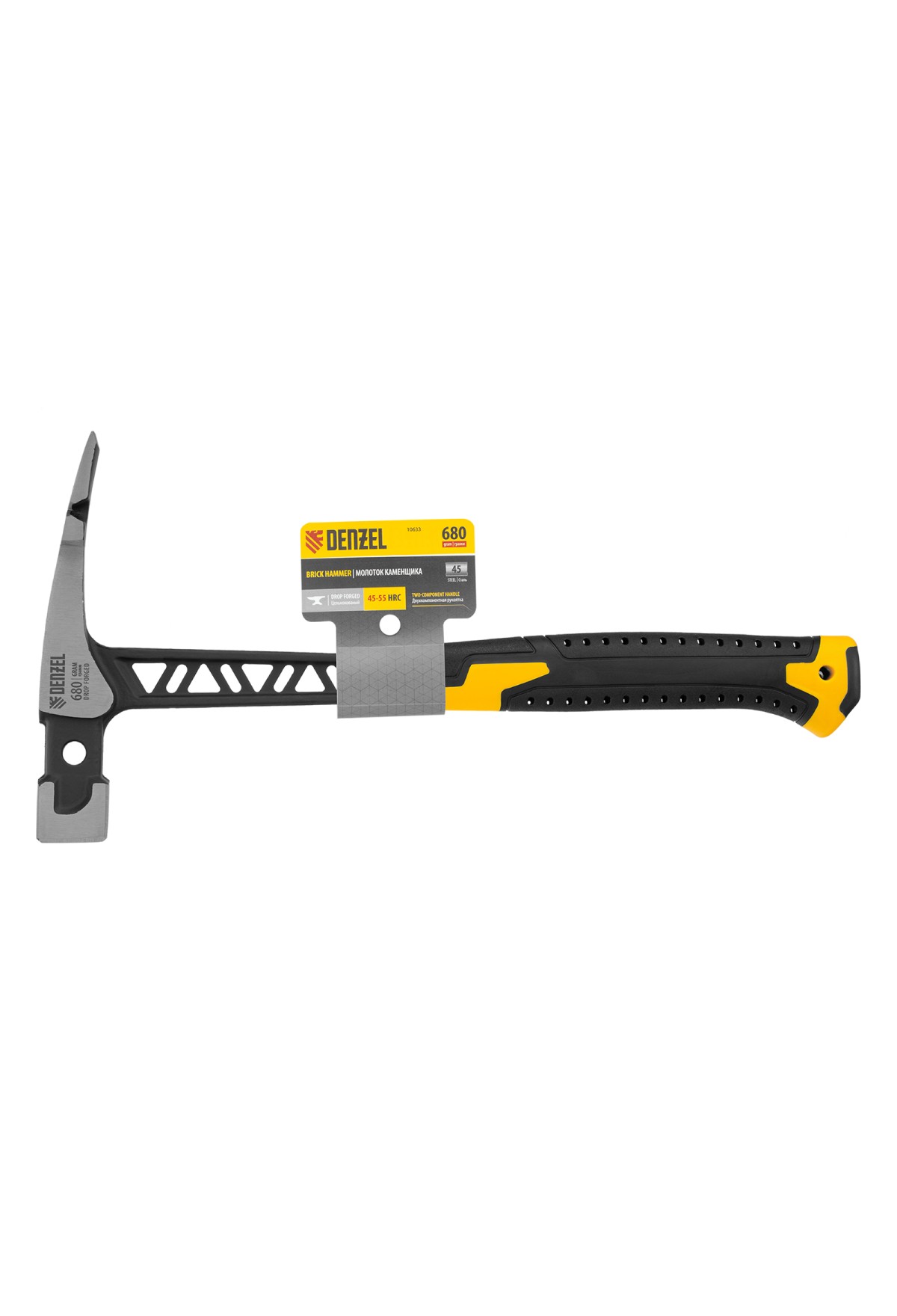 Технические характеристики Молоток каменщика 680 г, цельнокованый, двухкомпонентная обрезиненная рукоятка Denzel