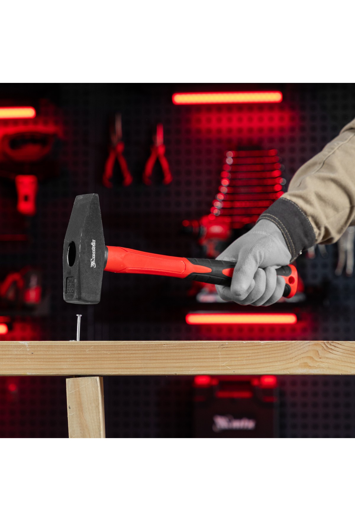 Технические характеристики Молоток слесарный optimal, 1000 г, фибергласовая обрезиненная рукоятка, квадратный боек Matrix