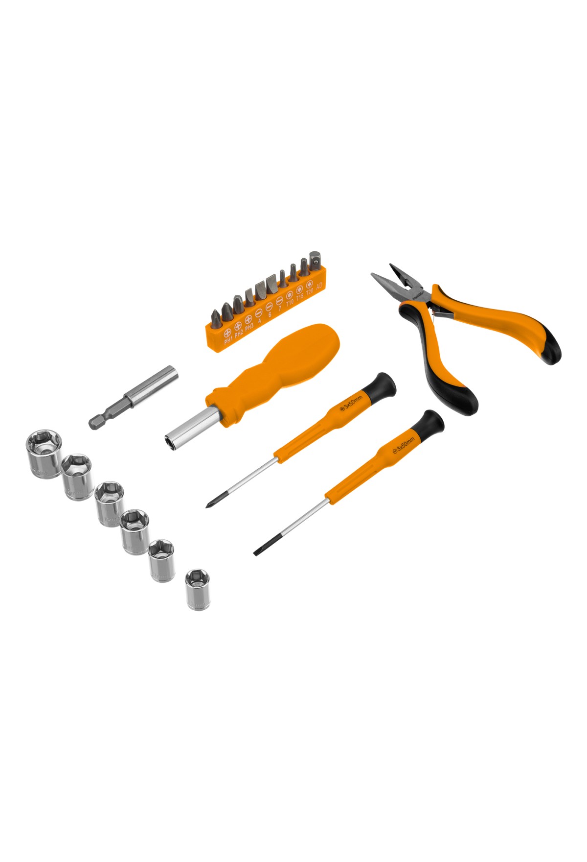 Комплектация | Длинногубцы - 1 штГоловки 9, 10, 11, 12, 13, 14 - 6 штОтвертки для точных работ SL, PH - 2 штОтвертка для бит - 1 штАдаптер для бит - 1 штБиты PH, SL, T - 9 штДержатель для бит с магнитом - 1 штКейс - 1 шт |