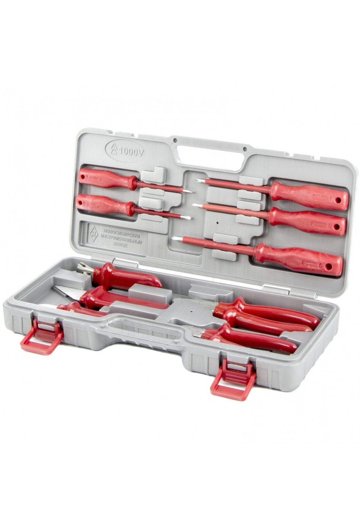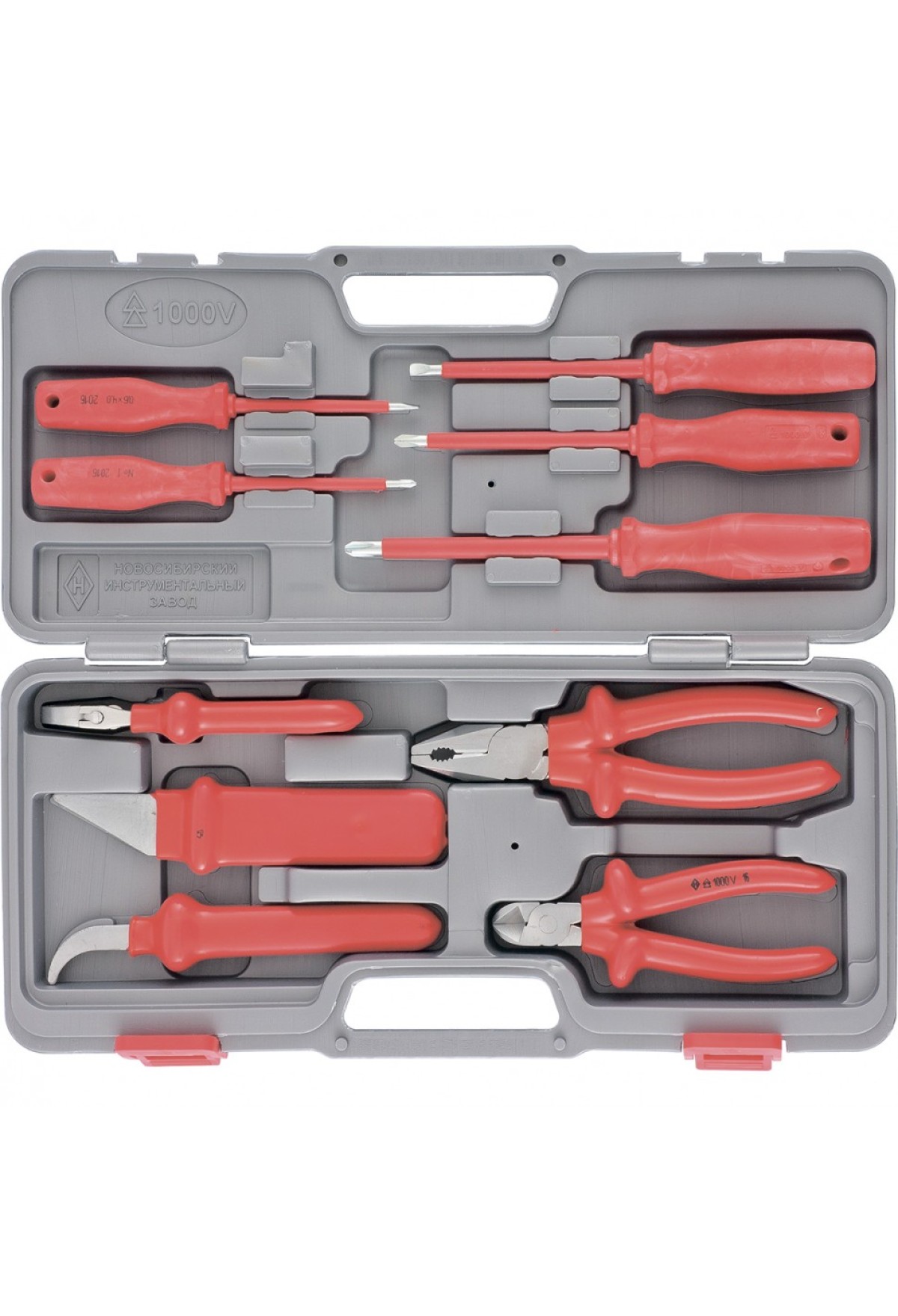 Комплектация Отвертки плоские - 2 штОтвертки крестообразные - 3 штКлюч разводной - 1 штНож кабельный - 1 штНож прямой - 1 штПлоскогубцы - 1 штБокорезы - 1 штКейс - 1 шт