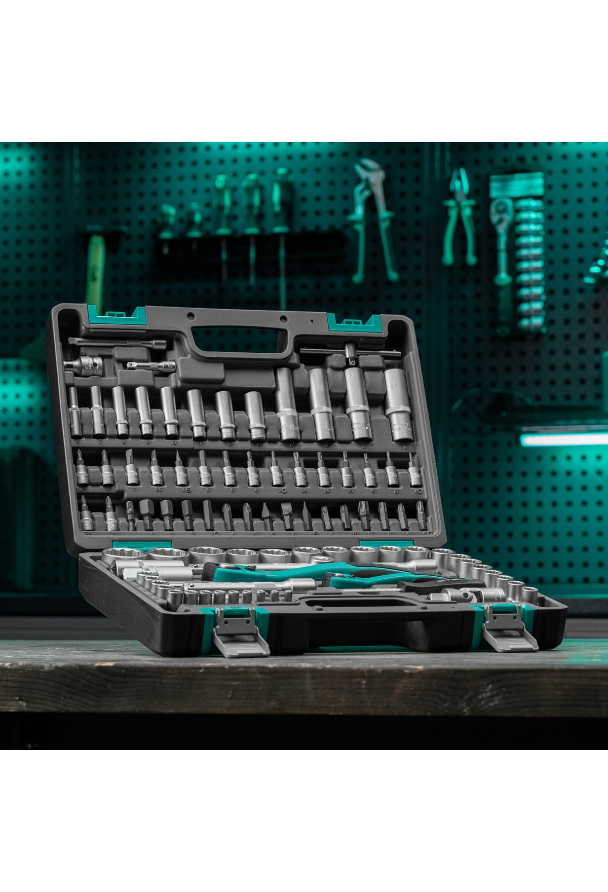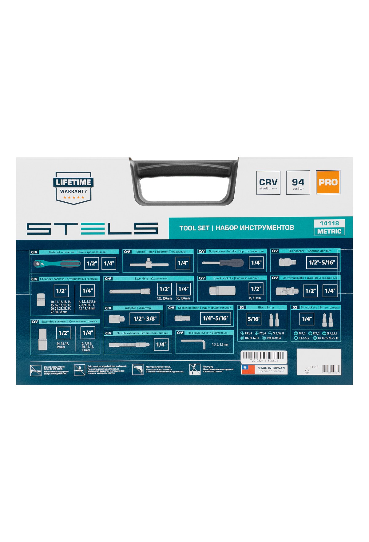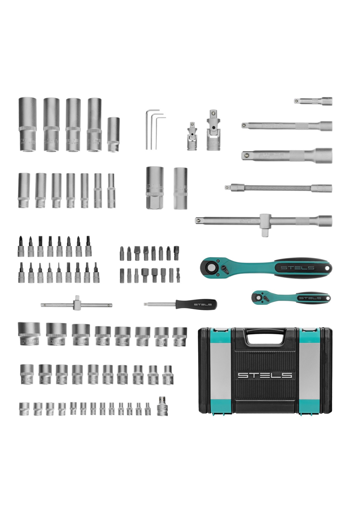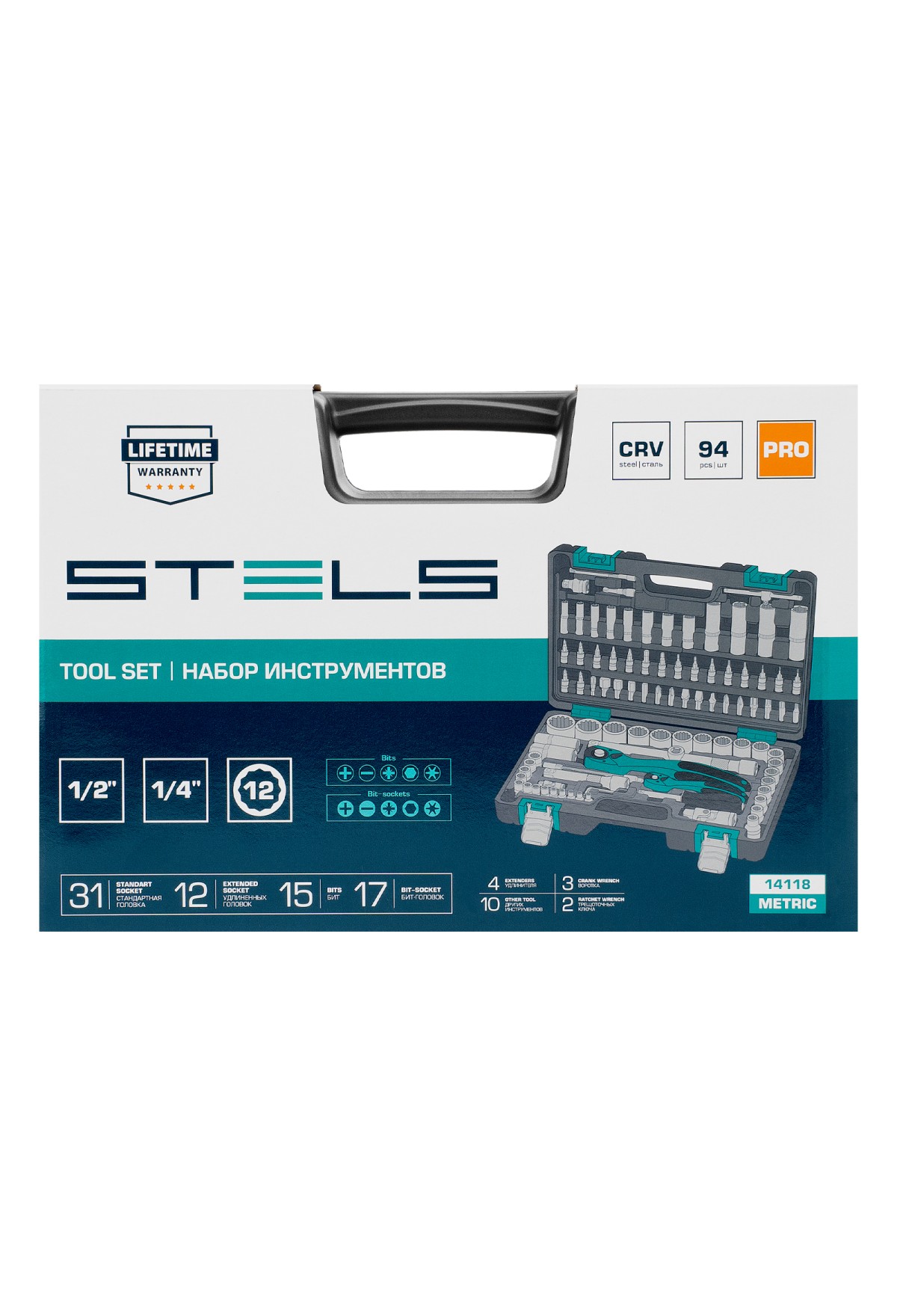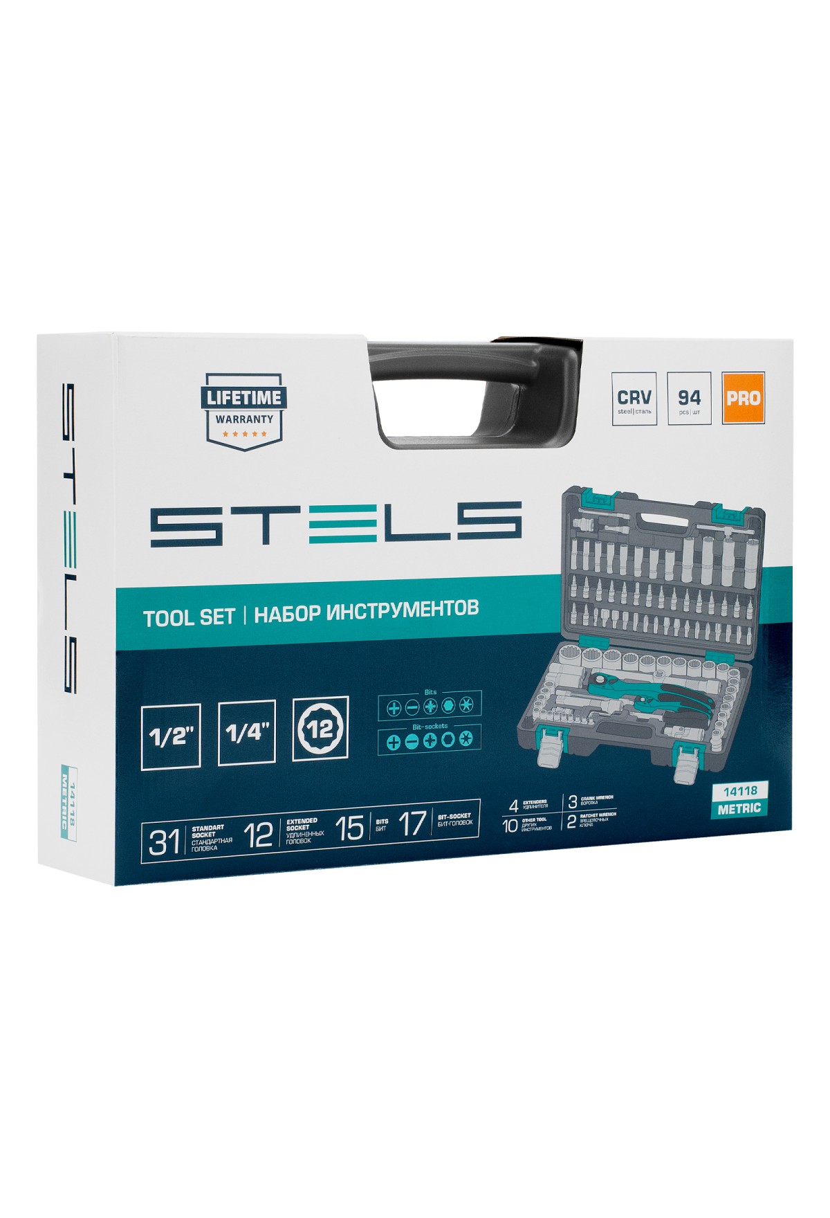 Набор инструментов Stels 14118 состоит из 94 предметов и включает инструменты и насадки для работы с резьбовыми крепежами, в том числе 12-гранные торцевые головки, облегчающие работу в труднодоступных местах. Комплект упакован в кейс из ударопрочного жесткого пластика, с металлическими застежками, удобный для хранения и перевозки. Набор предназначен для ремонта автомобилей в гараже или автосервисе, пригодится также дома, на даче или в поездке.