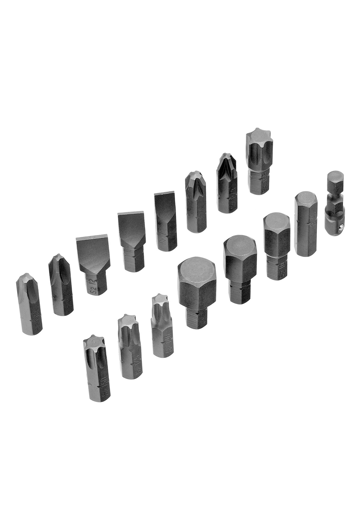 - Прочность и высокий ресурс — торцевые головки выполнены из термически обработанной хромованадиевой стали, биты-вставки изготовлены из высококачественной японской стали S2.