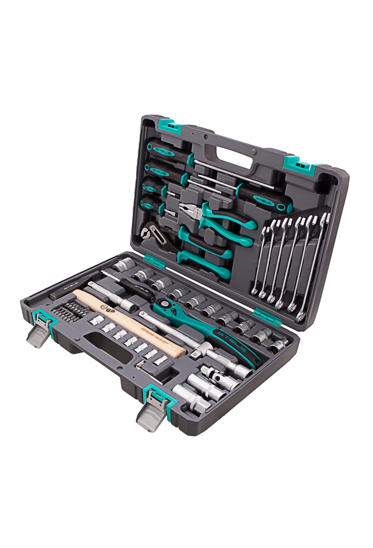 Комплектация Ключ трещoточный - 1 штУдлинитель - 2 штПереходник на Вороток Т-образный - 1 штОтвертка-держатель - 1 штКардан - 1 штГоловки 8, 9, 10, 11, 12, 13, 14, 15, 17, 19, 22, 24, 27 - 16 штГоловки свечные 16, 21 - 2 штКлючи комбинированные - 10, 12, 13, 14, 15, 17 - 6 штПереходник - 2 штБиты-вставки SL, PH, T - 14 штОтвертки SL, PH - 5 штПлоскогубцы - 1 штМолоток - 1 штКлещи - 1 штКлючи имбусовые 1.5, 2, 2.5, 3 - 4 штКейс - 1 шт
