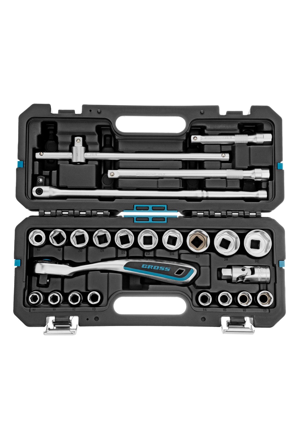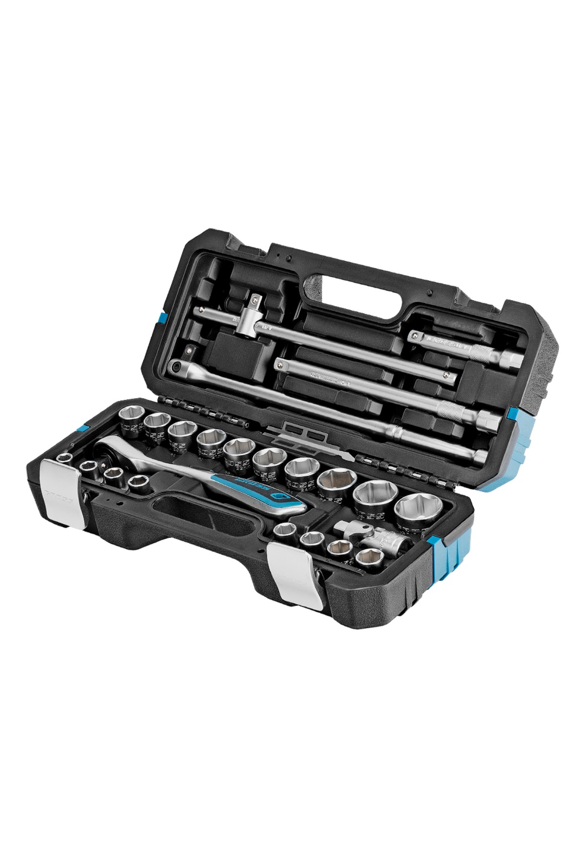 | Комплектация | Ключ трещoточный - 1 штВороток шарнирный - 1 штВороток Т-образный - 1 штУдлинитель - 2 штКардан - 1 штГоловки 10, 11, 12, 13, 14, 15, 16, 17, 18, 19, 20, 21, 22, 23, 24, 27, 30, 32 - 18 штКейс - 1 шт |