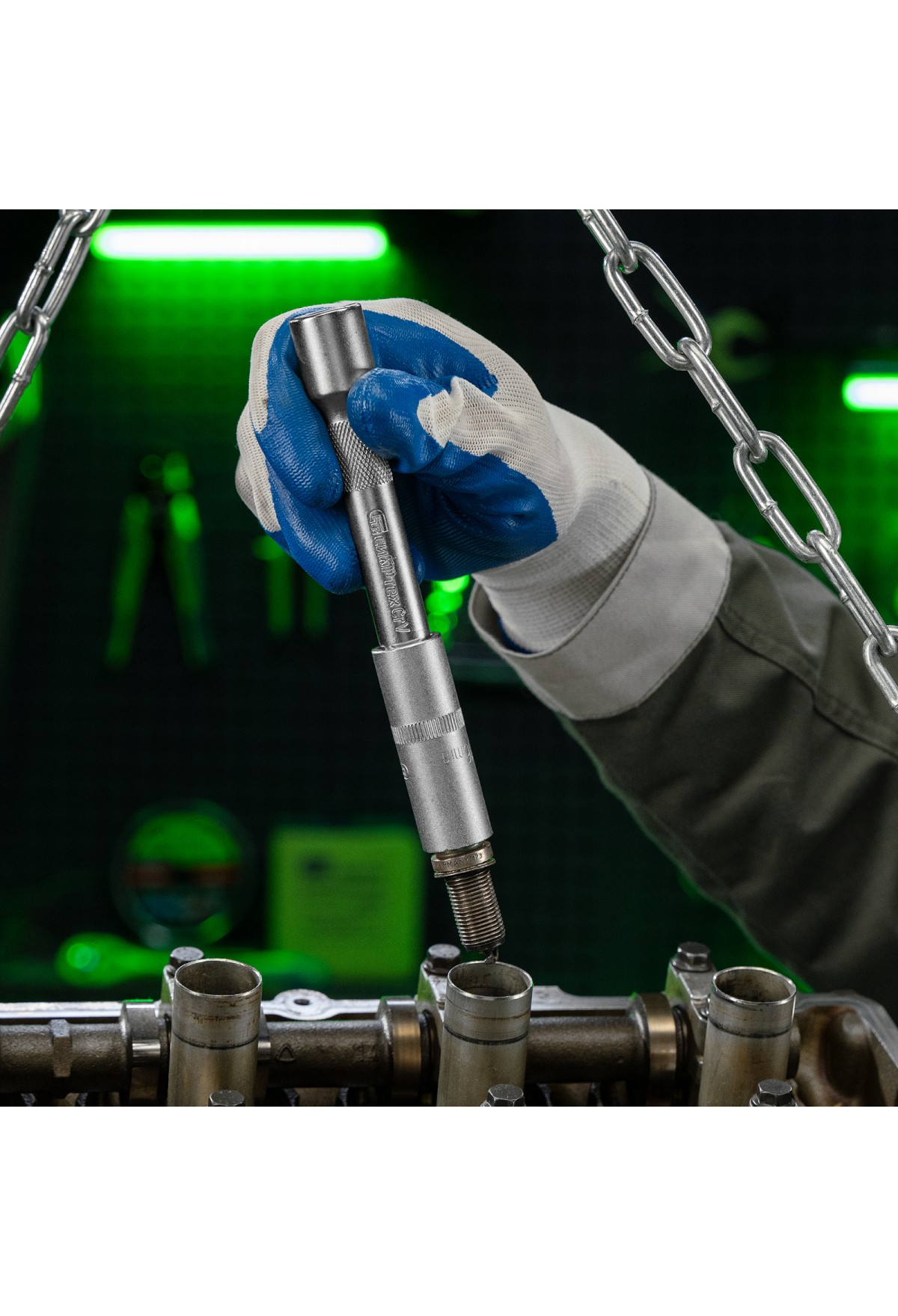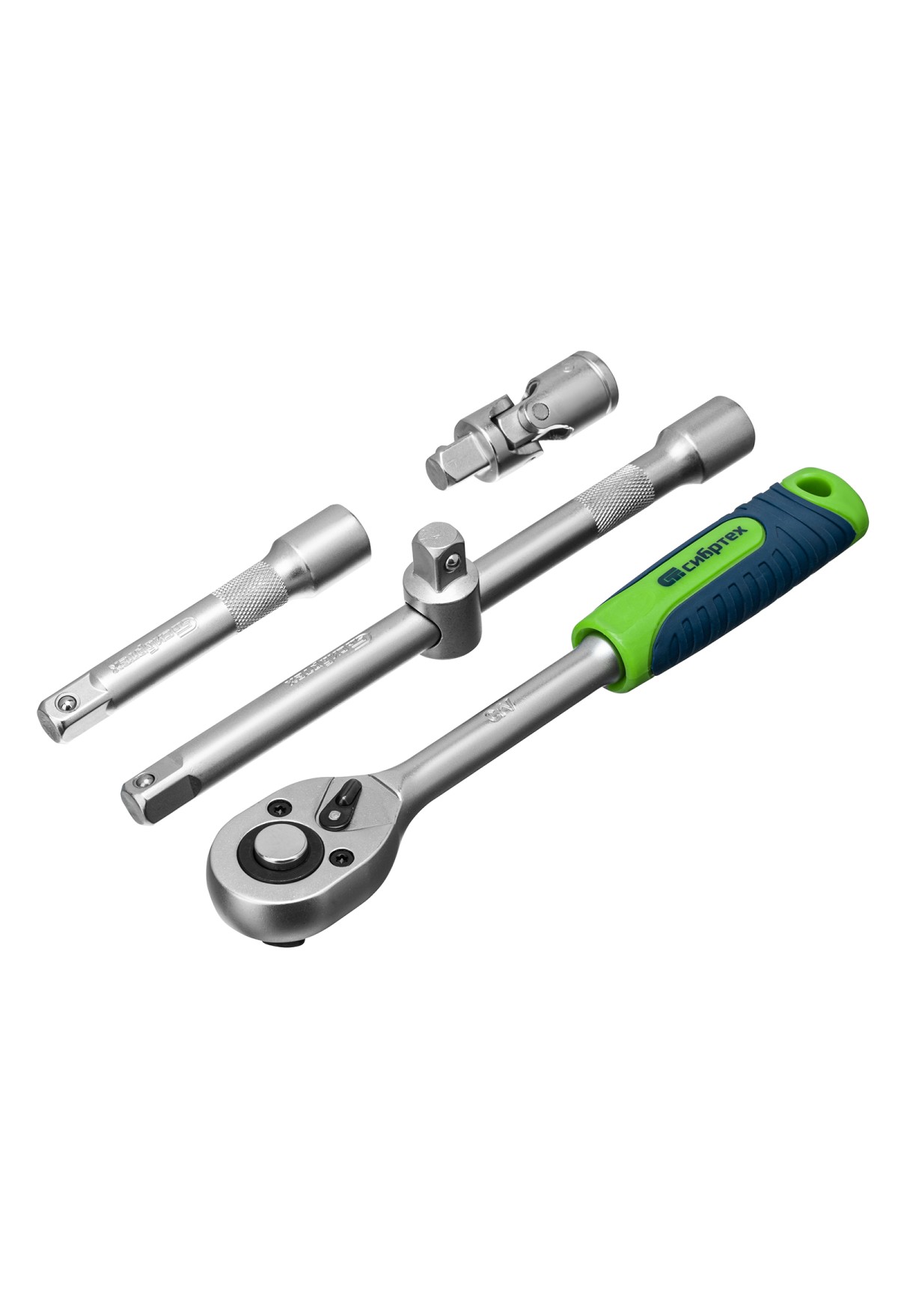 • Прочная фиксация — шариковый замок на трещотках, воротках, шарнирах и удлинителях надежно удерживает головки.