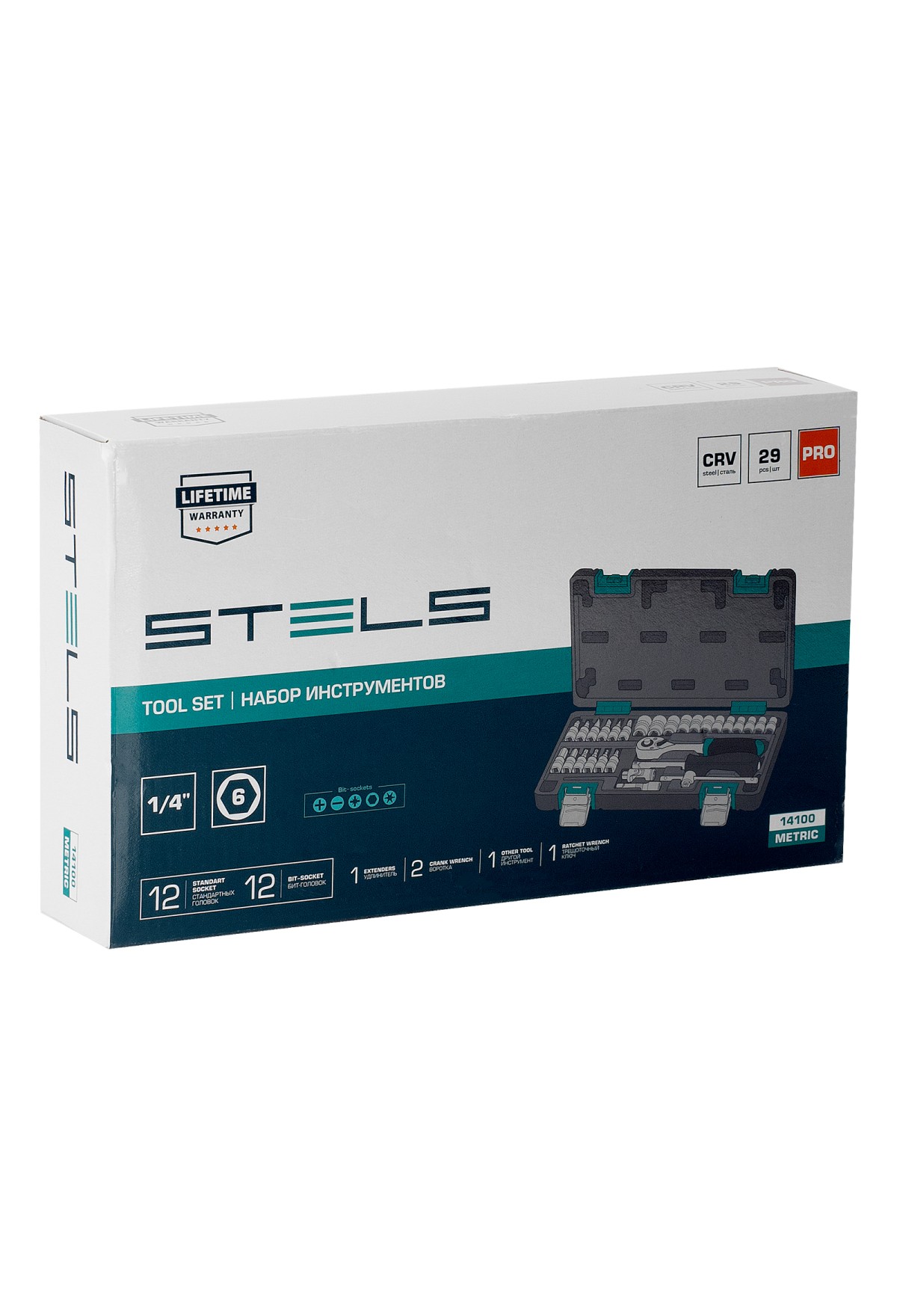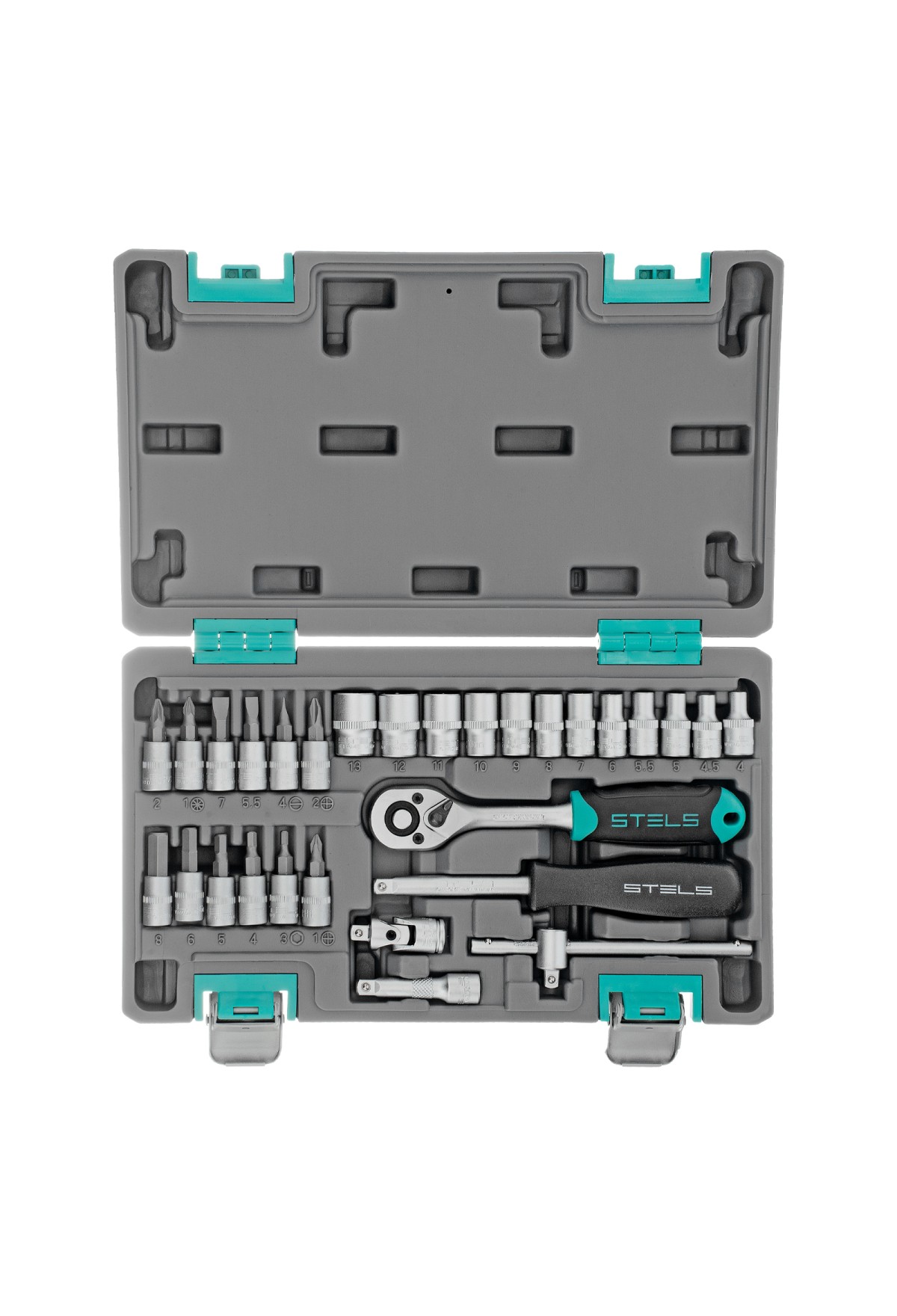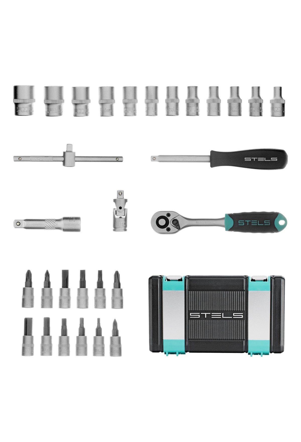 Набор инструментов, 1/4", CrV, пластиковый кейс 29 предметов Stels