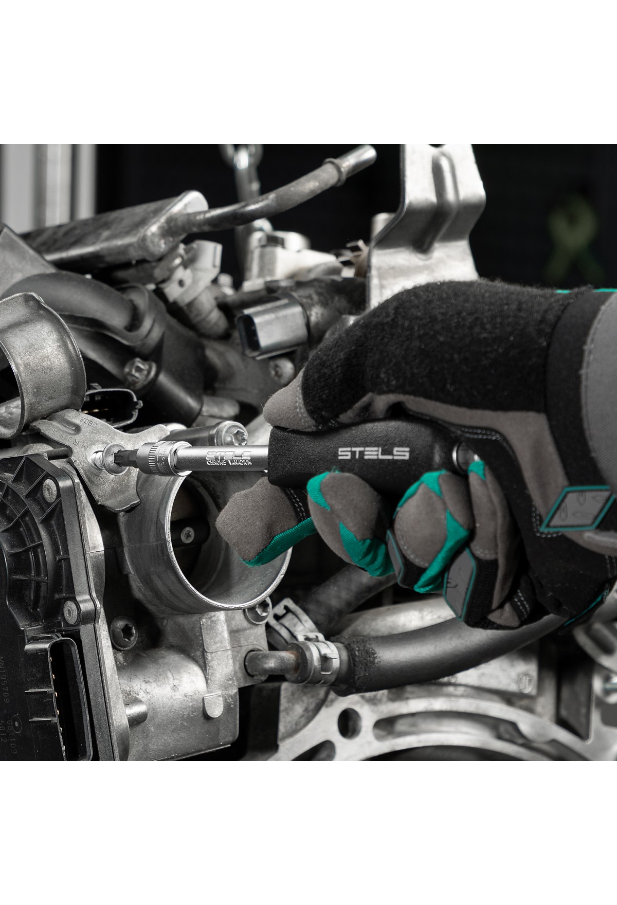 - Комфортная работа — трещотка с 72 зубьями вращает крепеж мягко и плавно, а эргономичная рукоятка удобно лежит в руке.