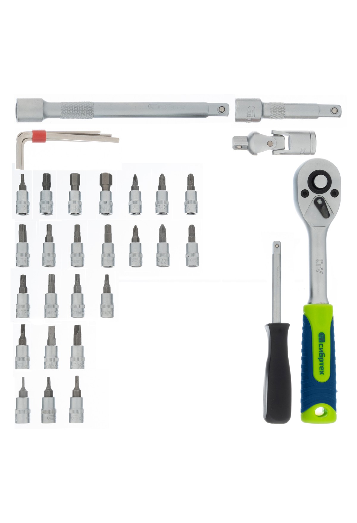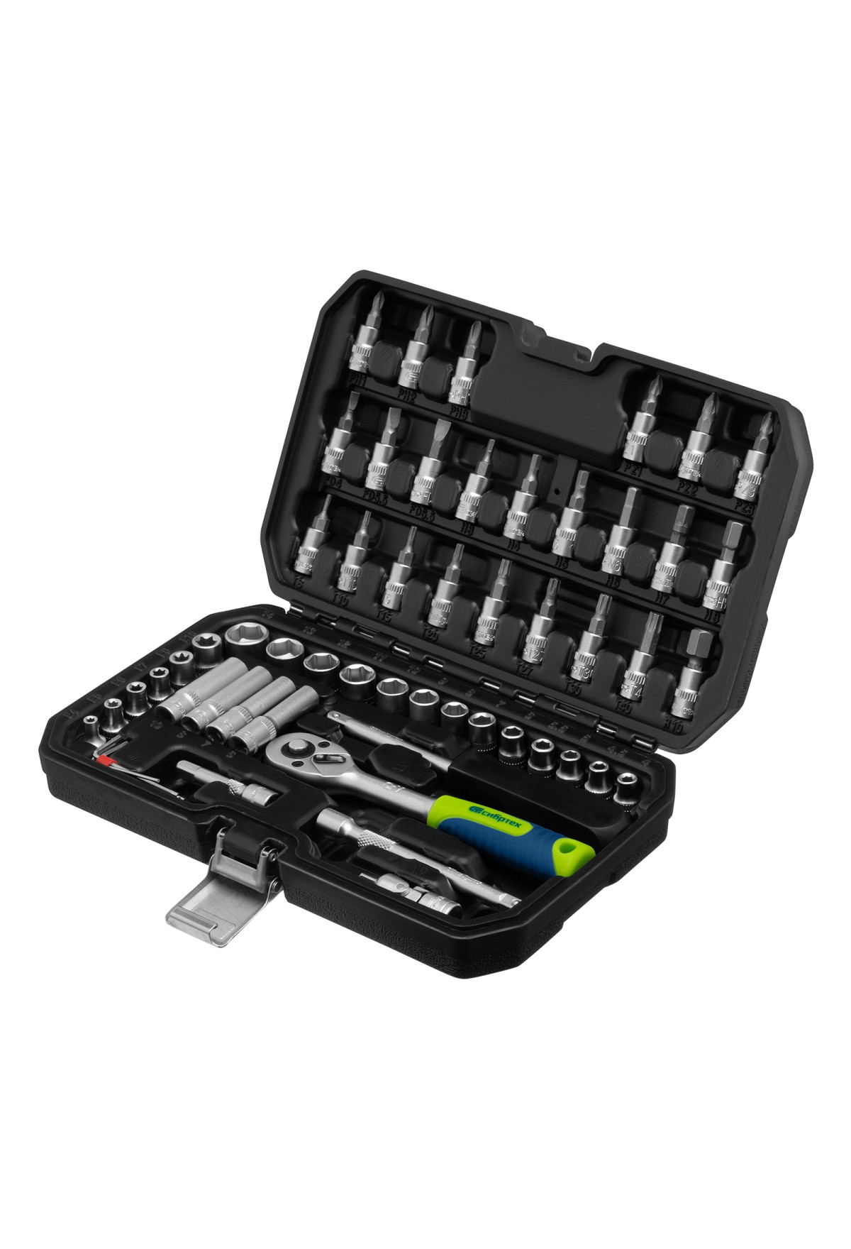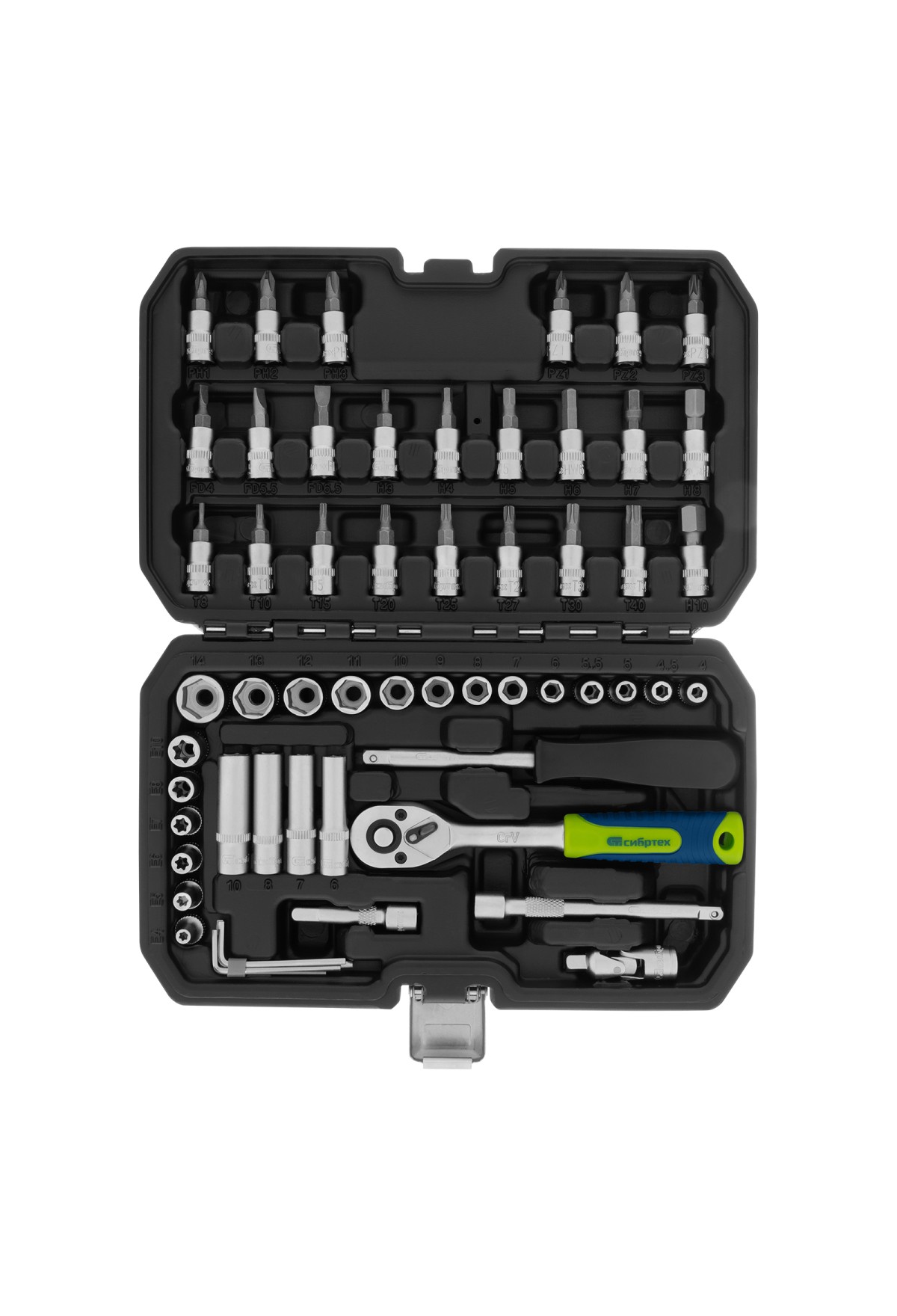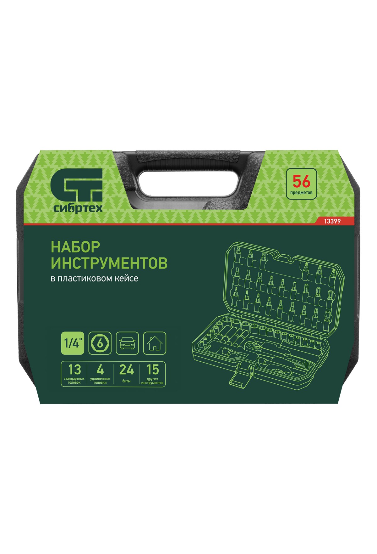 • Набор инструментов, 1/4", пластиковый кейс 56 предметов Сибртех