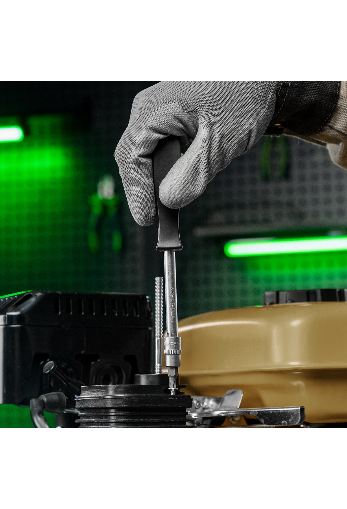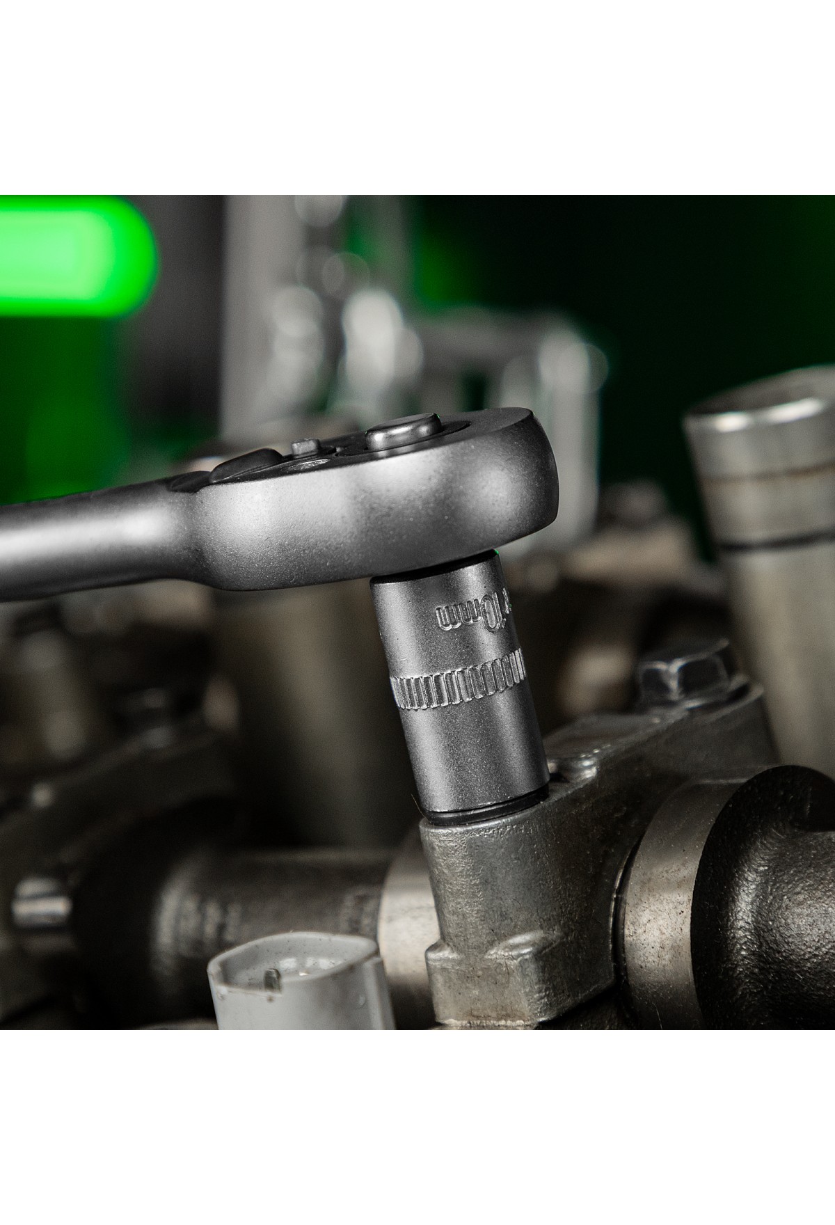 • Комфортная и эффективная работа — ключи-трещотки с 45 зубьями оснащены механизмом быстрого сброса, переключателем реверса с металлическим флажком и двухкомпонентной рукояткой.