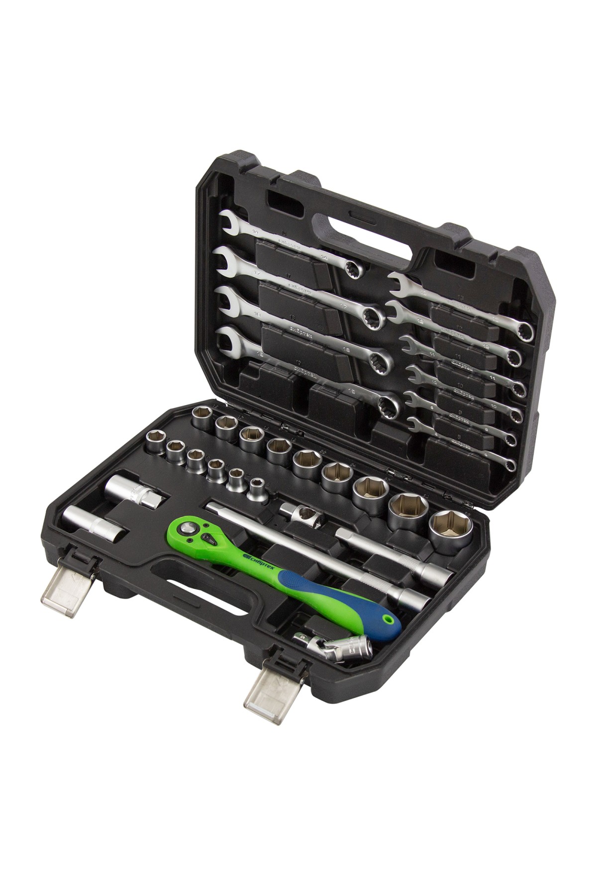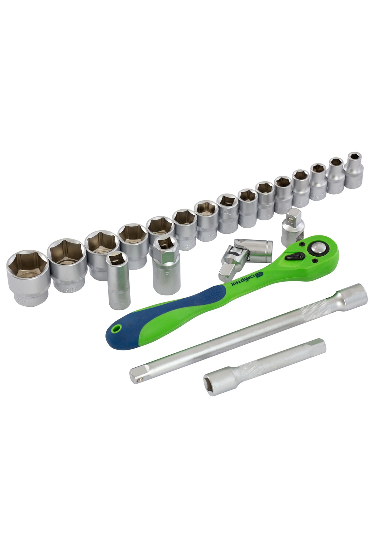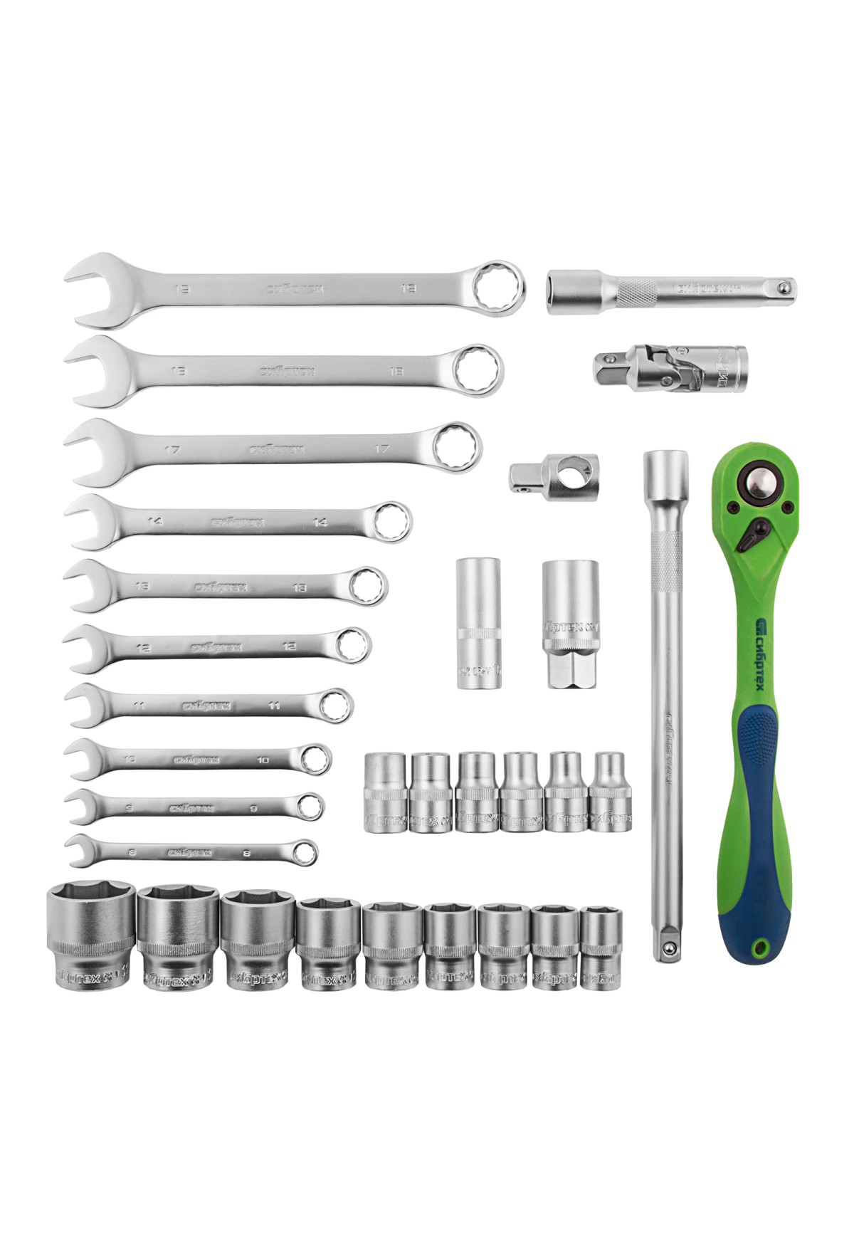 Набор инструментов Сибртех 13527, 1/2 дюйма, в пластиковом кейсе, состоит из 32 предметов, изготовленных из стали CrV-группы и предназначенных для закручивания и откручивания резьбовых крепежей. Имеющиеся в комплекте 2 удлинителя и кардан облегчают работу в труднодоступных местах. Набор будет полезен для ремонта автомобиля в гараже, пригодится также и в быту.