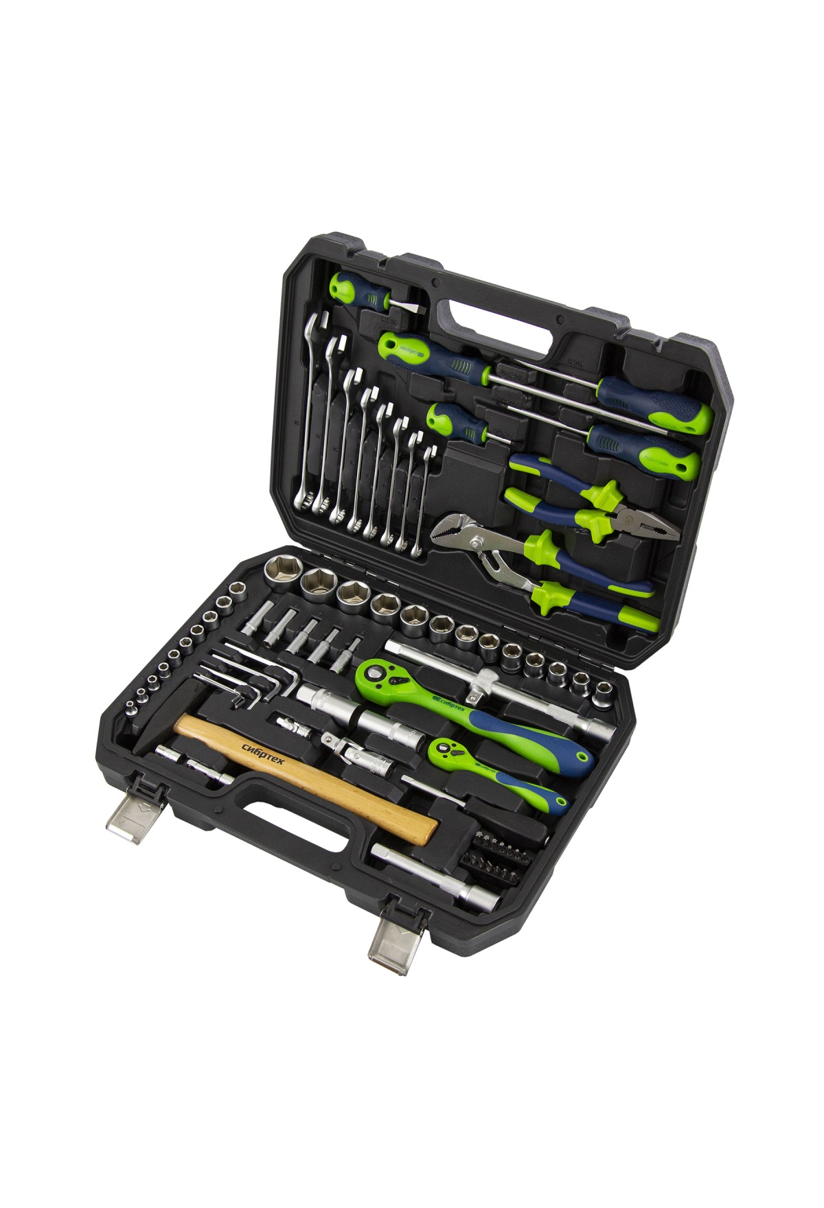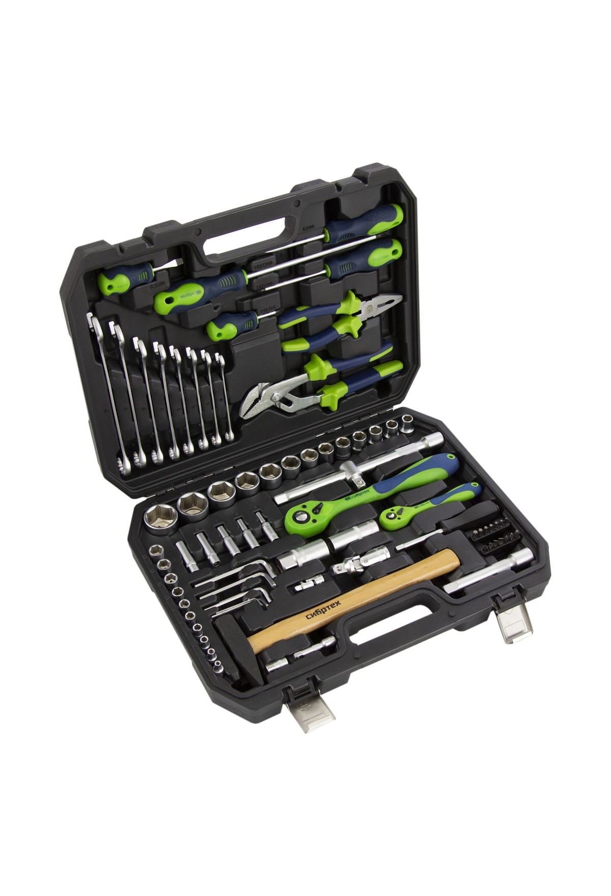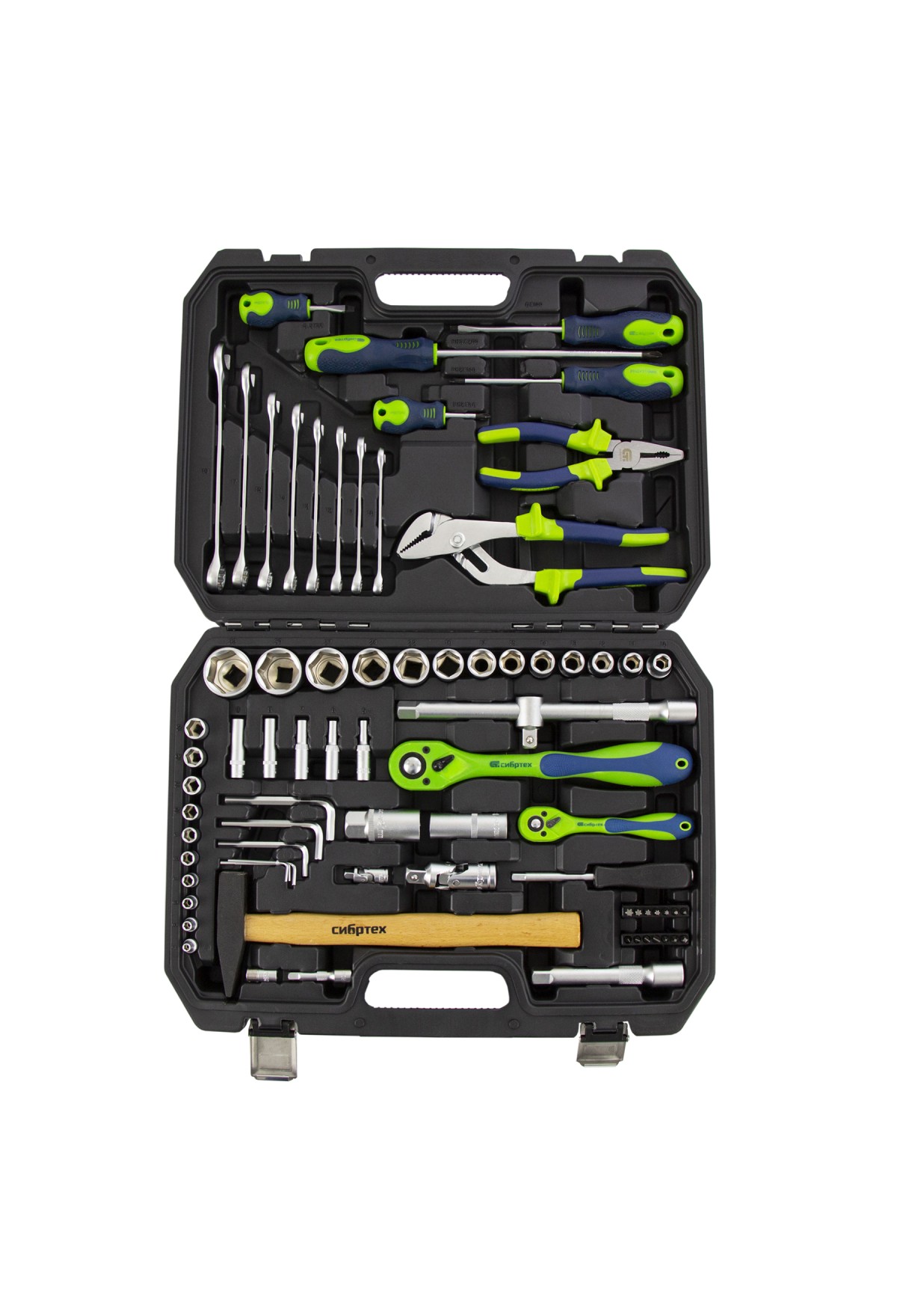 Набор инструментов Сибртех 13528 упакован в пластиковый кейс и состоит из 76 предметов из стали CrV, с присоединительными размерами 1/2"и 1/4". Предназначен для монтажа и демонтажа резьбового крепежа с разными типами шлицев, а также для проведения ударных и других слесарно-монтажных работ. В комплект поставки входят карданы, удлинители и переходники, облегчающие работу в труднодоступных местах. Набор используется для ремонта автомобилей, а также полезен в быту.