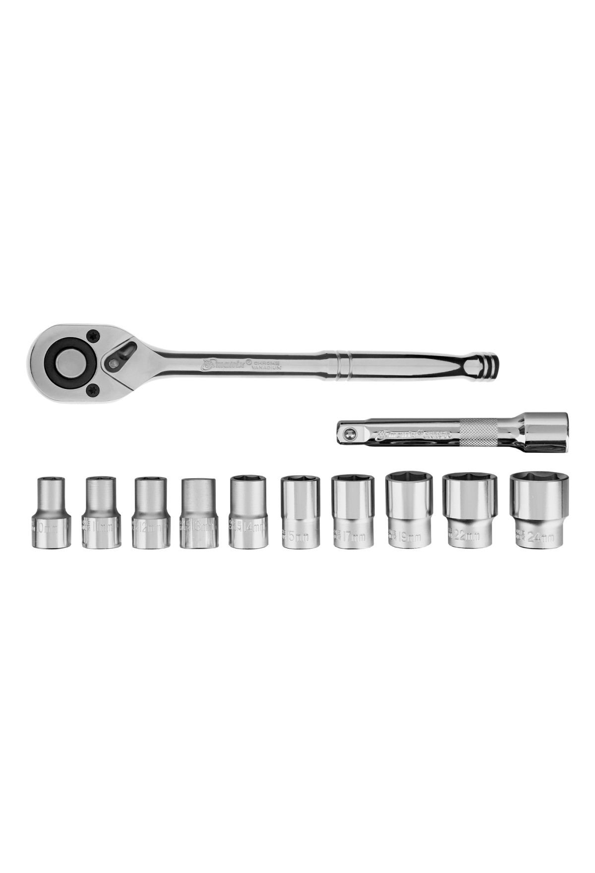 • Набор торцевых головок, 1/2", головки 10 - 24 мм, с трещот. ключом, 12 предметов Matrix
