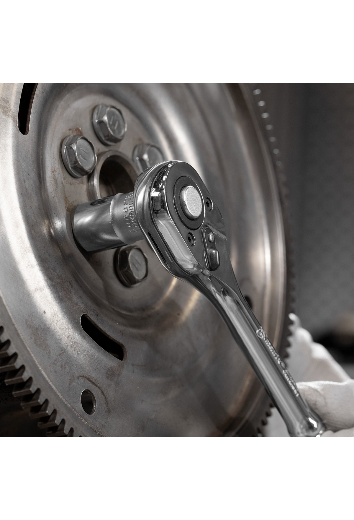• Реверс — благодаря специальному переключателю ключ-трещотка может использоваться и для закручивания, и для откручивания крепежей.