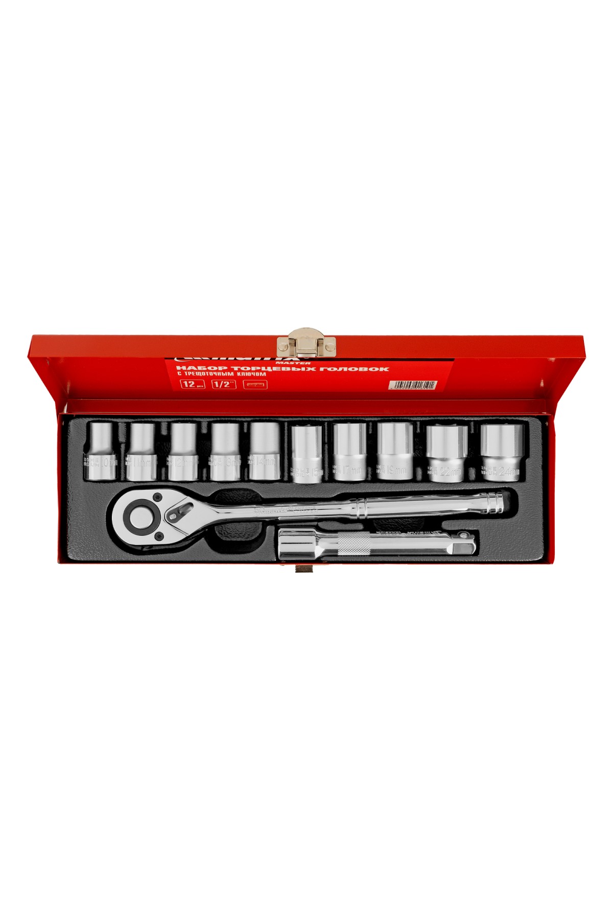 Технические характеристики Набор торцевых головок, 1/2", головки 10 - 24 мм, с трещот. ключом, 12 предметов Matrix