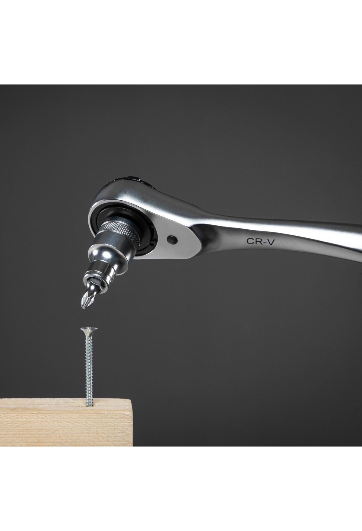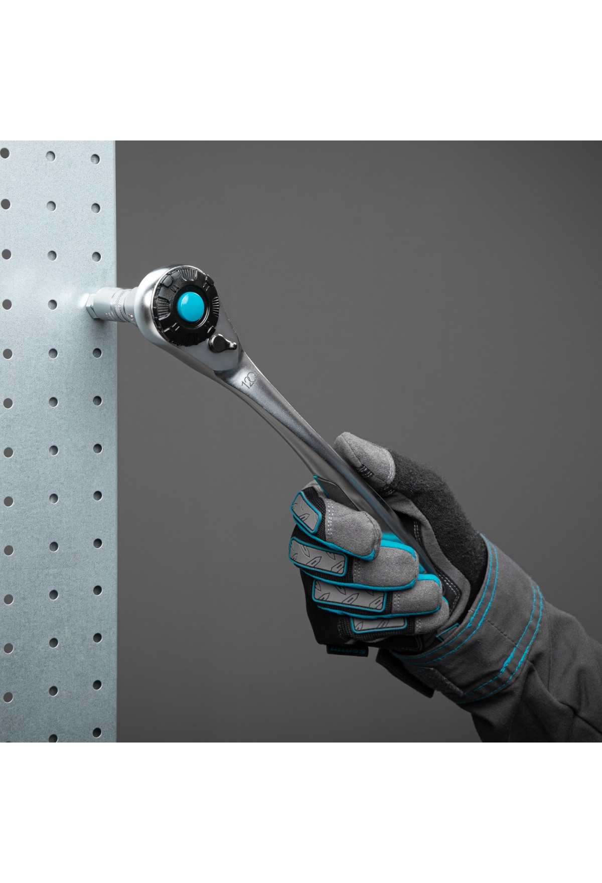 - Удобная работа в труднодоступных местах — цельнокованая трещотка со 120 зубьями позволяет вращать крепеж максимально плавно и мягко.