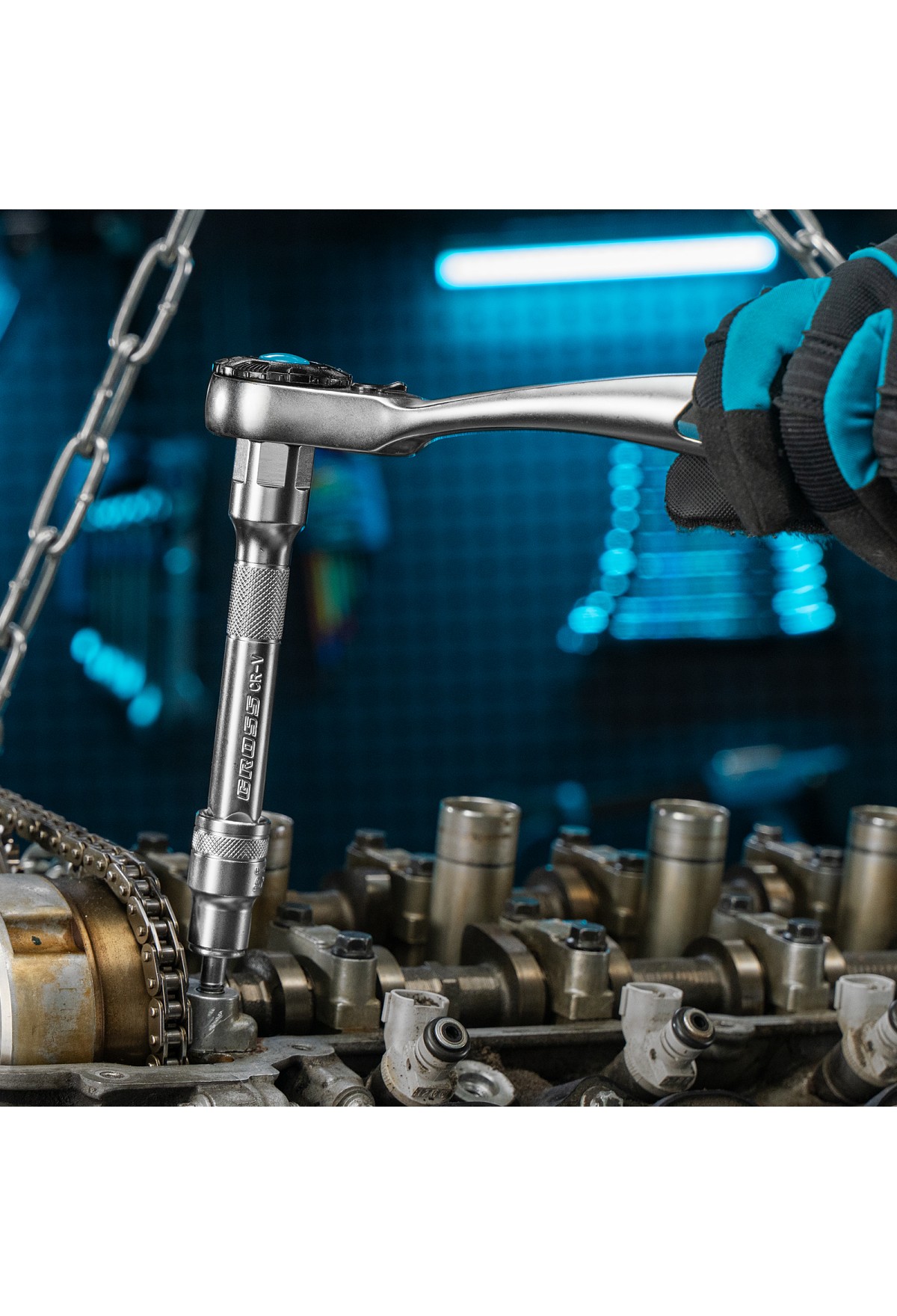 - Удобная работа в труднодоступных местах — цельнокованая трещотка со 120 зубьями позволяет вращать крепеж максимально плавно и мягко.