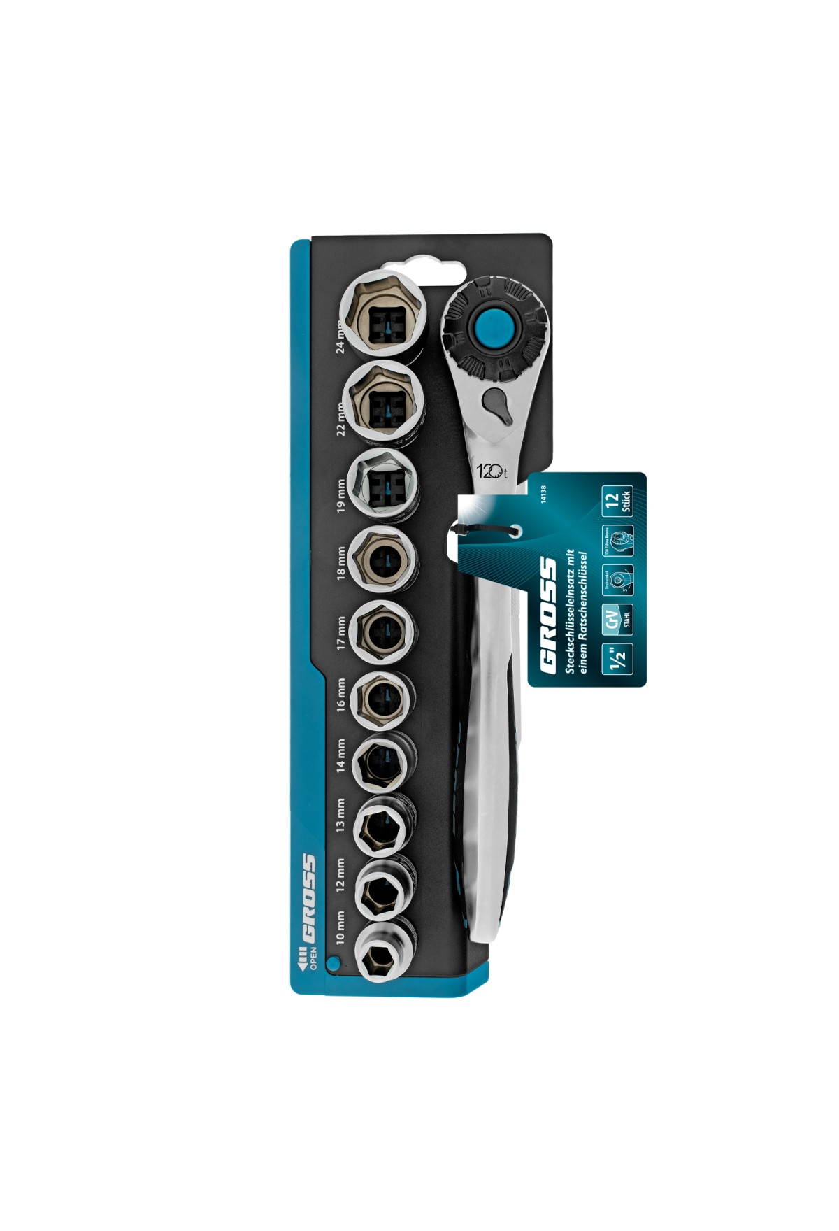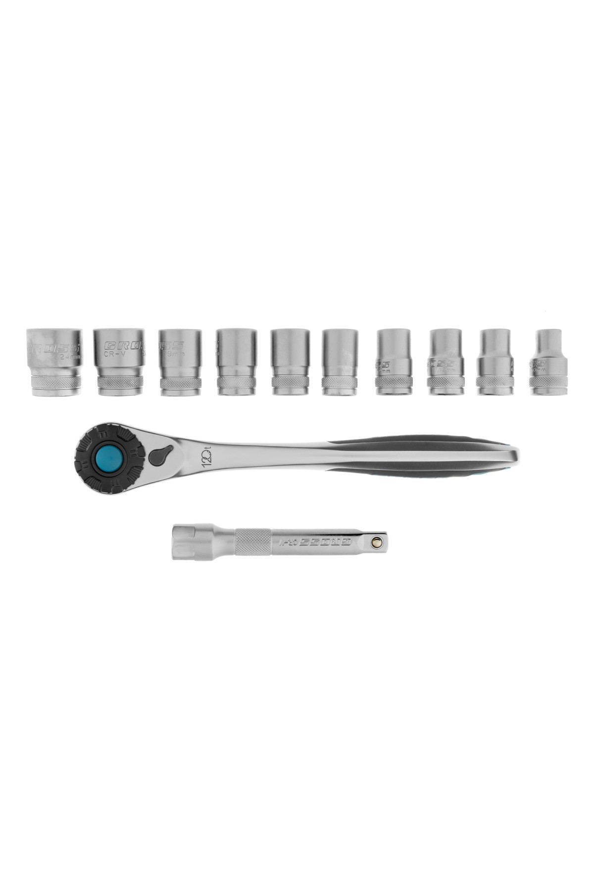 Набор Gross 14138 включает в себя 12 предметов из стали CrV-группы с посадочным квадратом 1/2 дюйма: 10 торцевых головок, трещотку со 120 зубьями и удлинитель 100 мм. Применяется для монтажа и демонтажа резьбовых соединений при проведении технического обслуживания авто или для бытовых ремонтных работ. Набор подходит не только для самостоятельного использования в гараже и дома, но и для профессиональной эксплуатации на станциях техобслуживания.