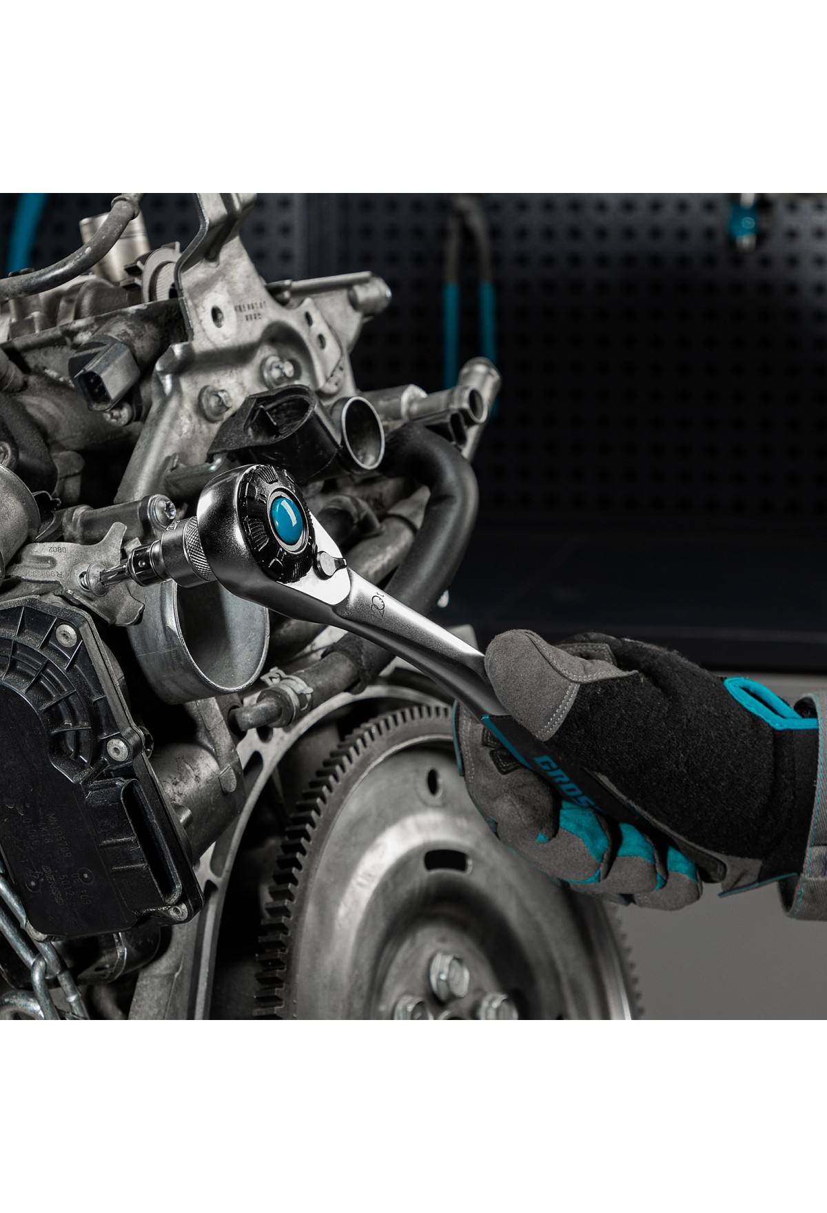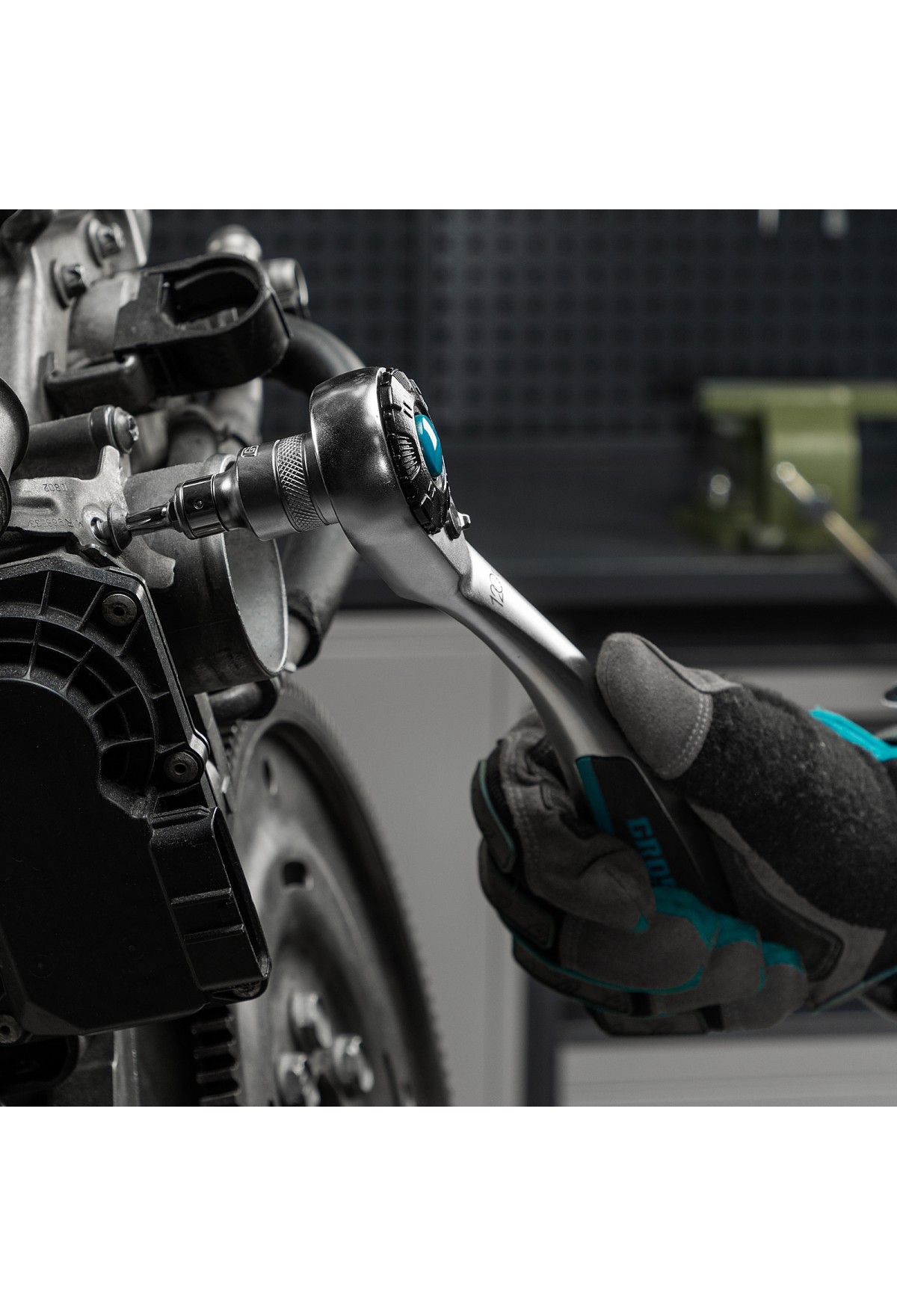 • Удобная работа в труднодоступных местах — цельнокованая трещотка со 120 зубьями позволяет вращать крепеж максимально плавно и мягко.