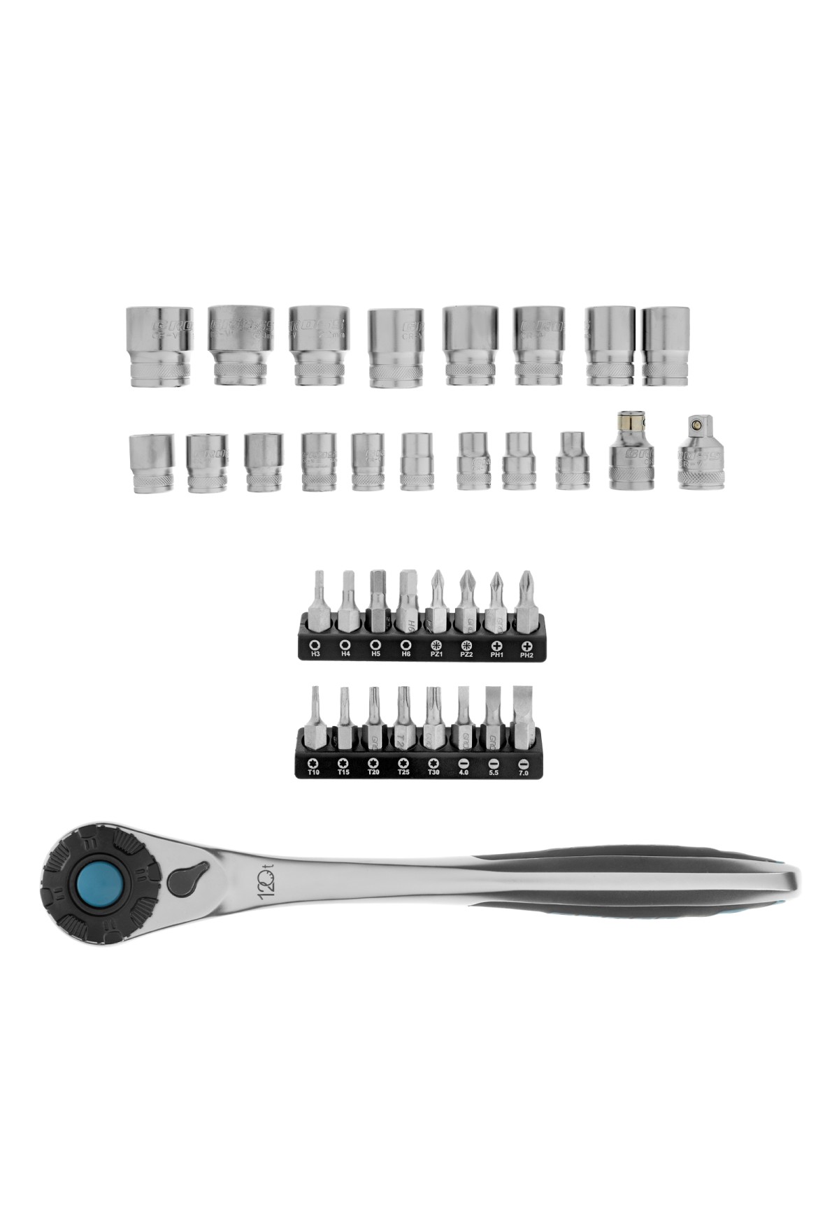 Набор торцевых головок, трещотка 120 зубьев, 1/2