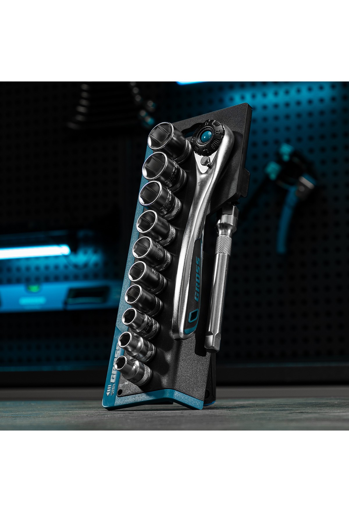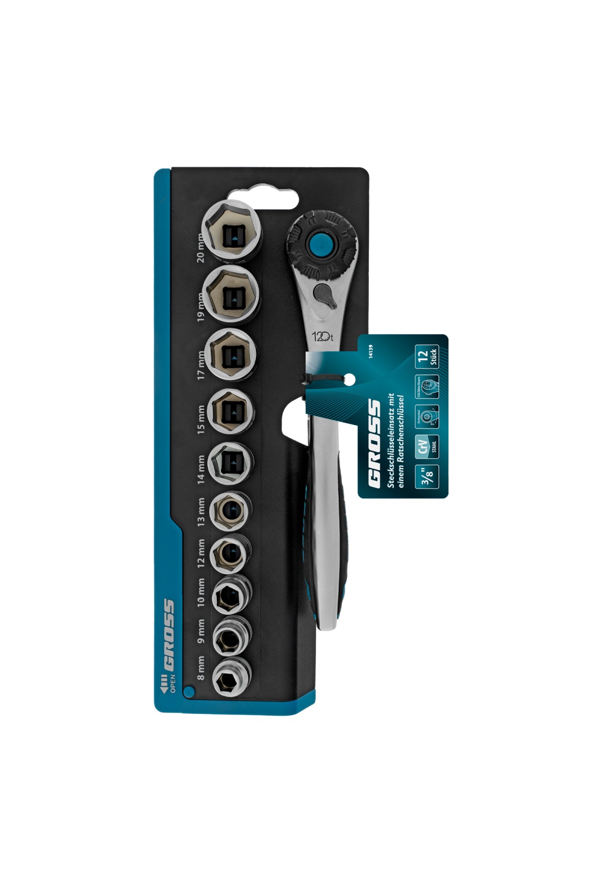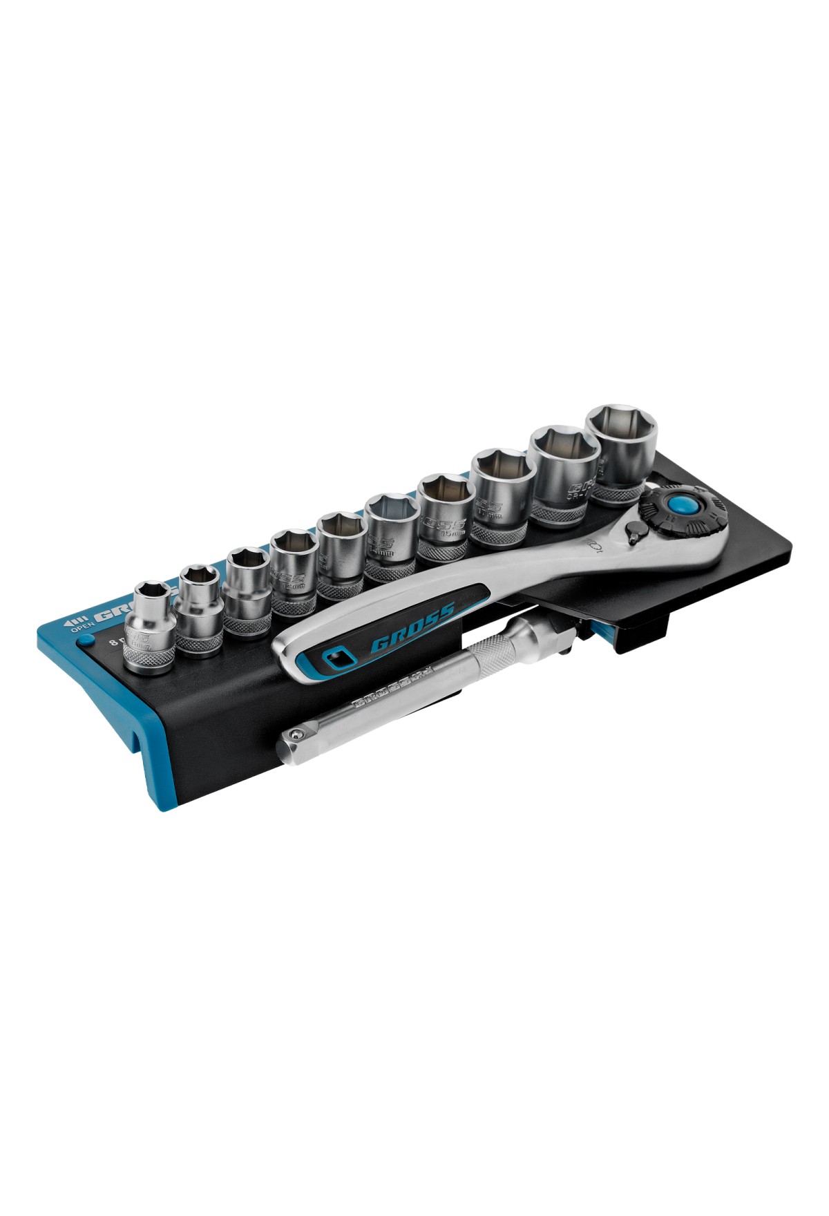 Набор Gross 14139 включает в себя 12 предметов из стали CrV-группы с посадочным квадратом 3/8 дюйма: 10 торцевых головок, трещотку со 120 зубьями и удлинитель 100 мм. Применяется для монтажа и демонтажа резьбовых соединений при проведении технического обслуживания авто или для бытовых ремонтных работ. Набор подходит не только для самостоятельного использования в гараже и дома, но и для профессиональной эксплуатации на станциях техобслуживания.