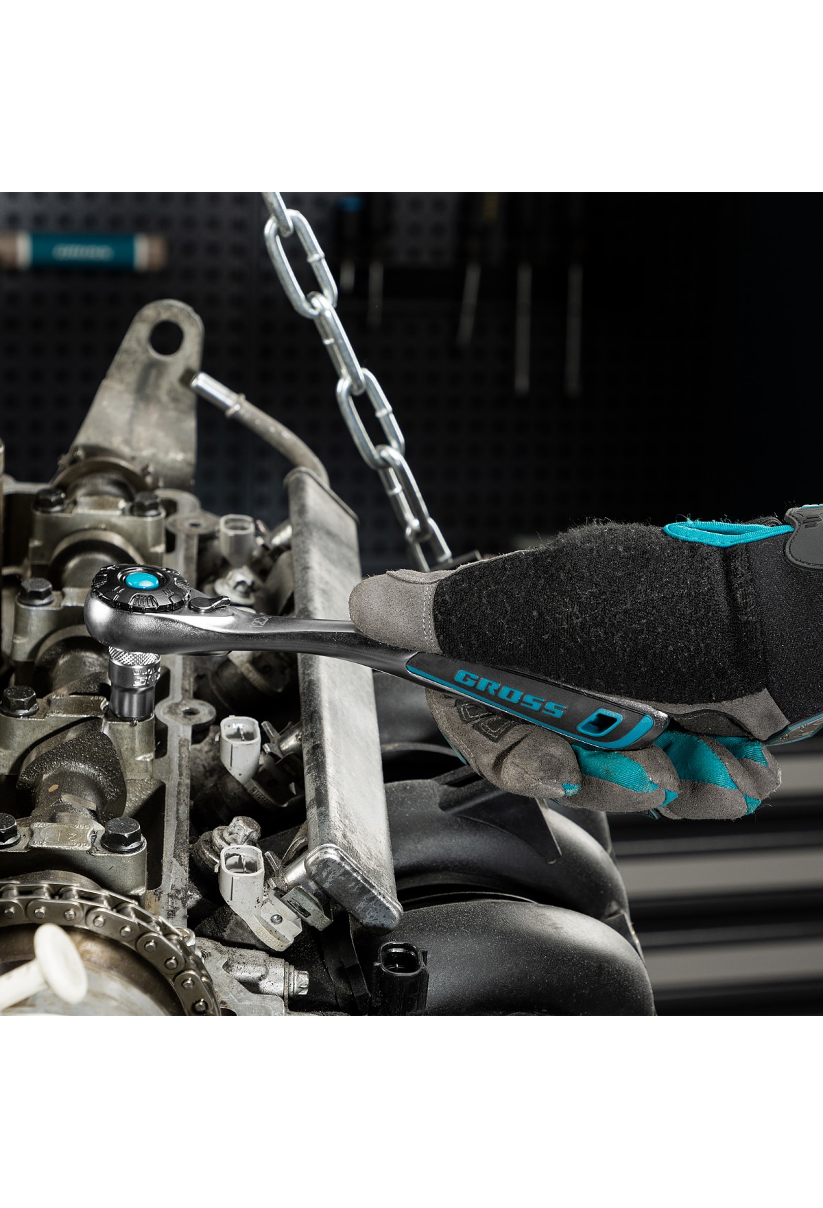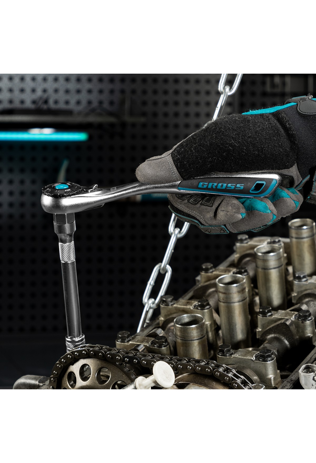 - Удобная работа в труднодоступных местах — цельнокованая трещотка со 120 зубьями позволяет вращать крепеж максимально плавно и мягко.