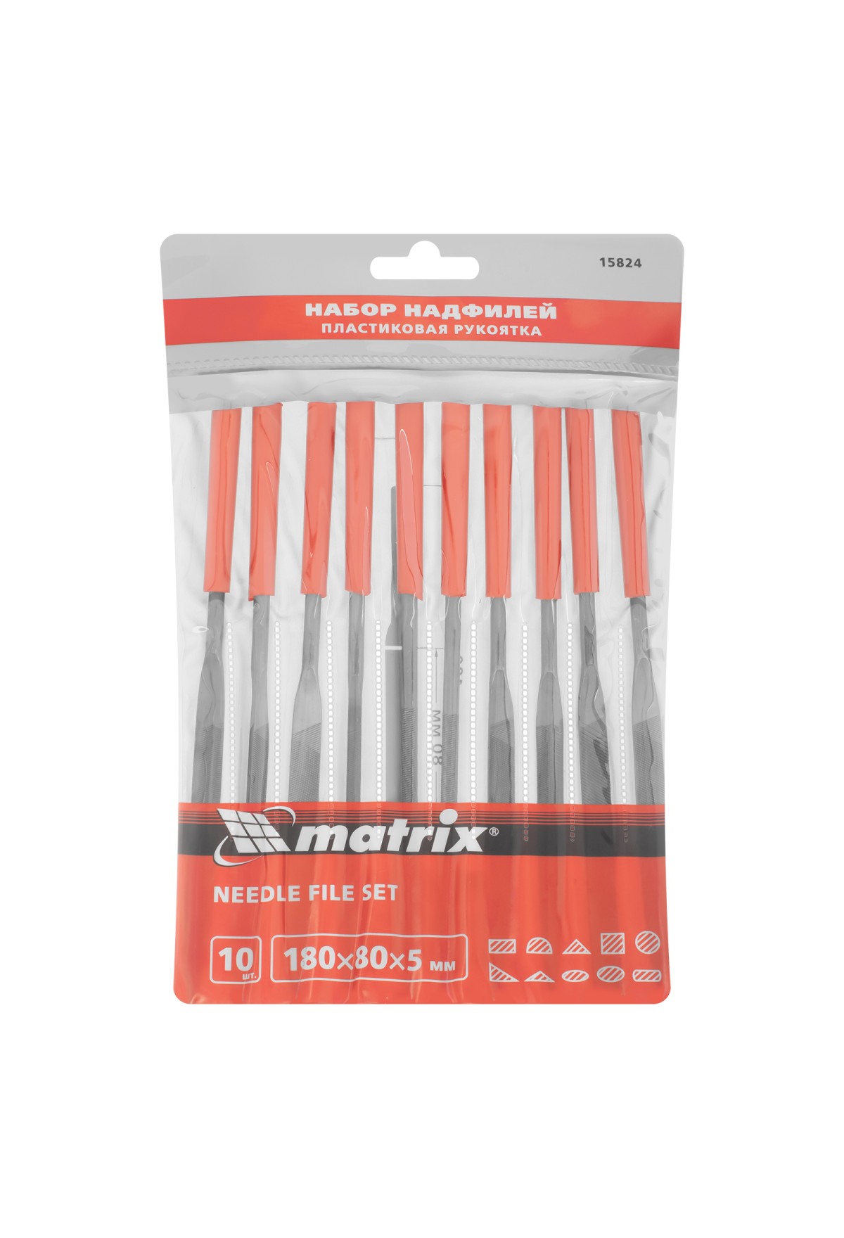 Технические характеристики Набор надфилей, 180 х 5 мм, 10 шт, пластиковые рукоятки Matrix