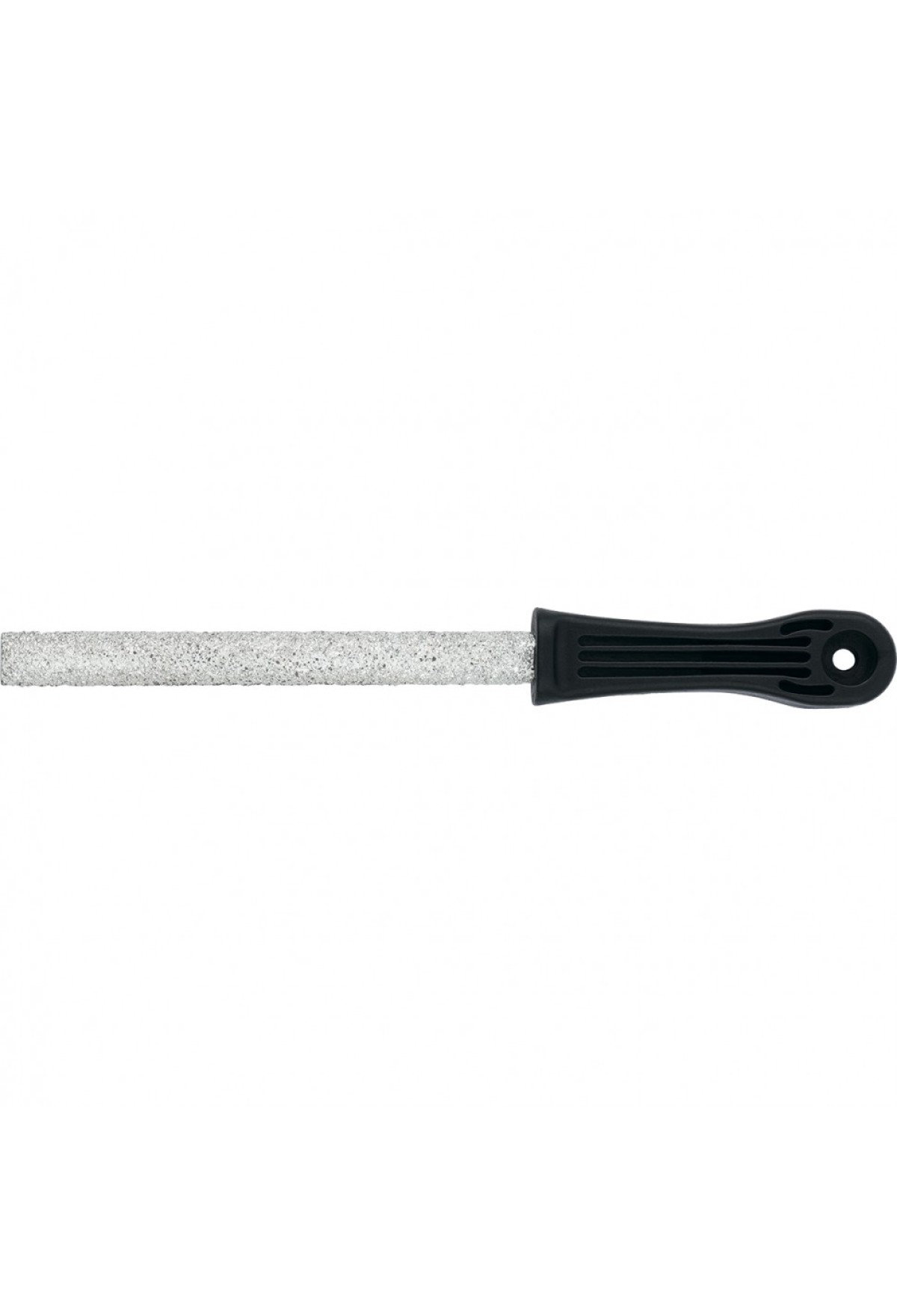 Круглый напильник Matrix 16506 с карбидным напылением, с рабочей частью длиной 150 мм и диаметром 5 мм, предназначен для зачистки и доводки изделий из материалов повышенной твердости — металла или керамики. Оптимален для опиливания округлых выемок и отверстий. Будет полезен в слесарной мастерской, во время ремонта, а также пригодится в быту.
