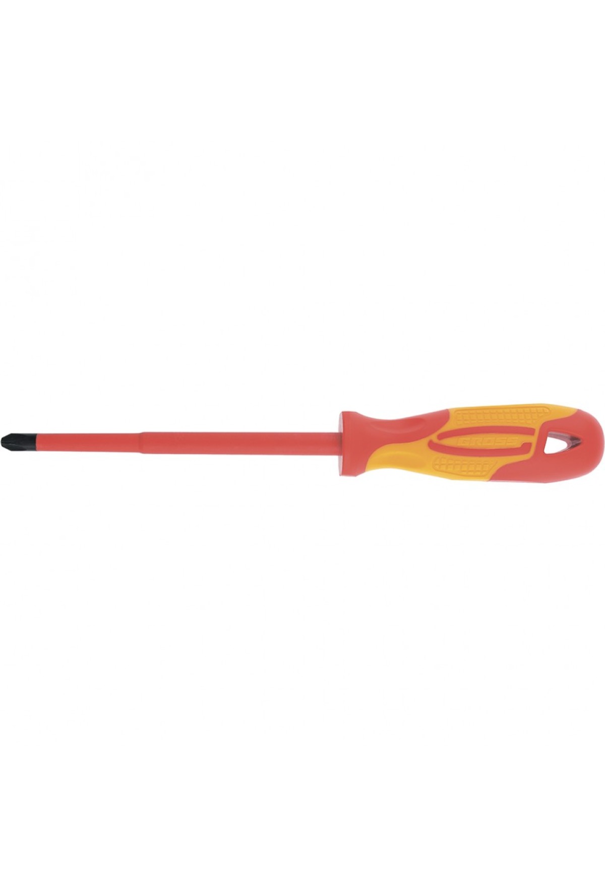 Диэлектрическая отвертка Gross 12941, SL3 х 75 мм, из стали CrMo, до 1000 В,с двухкомпонентной рукояткой, позволяет решать профессиональные задачи при работе с электрооборудованием. Отверткой со шлицем «минус» осуществляется монтаж или извлечение крепежа типа Slotted при замене розеток, установке электросчетчиков, клеммников и т.д. За счет стержня длиной 75 мм инструмент подходит для работы в углублениях и с легкодоступным крепежом. Внимание — техника безопасности запрещает выполнять работы под напряжением!