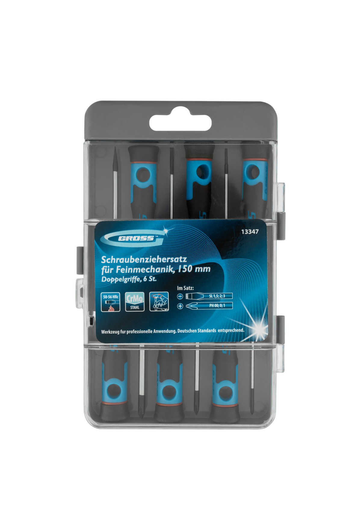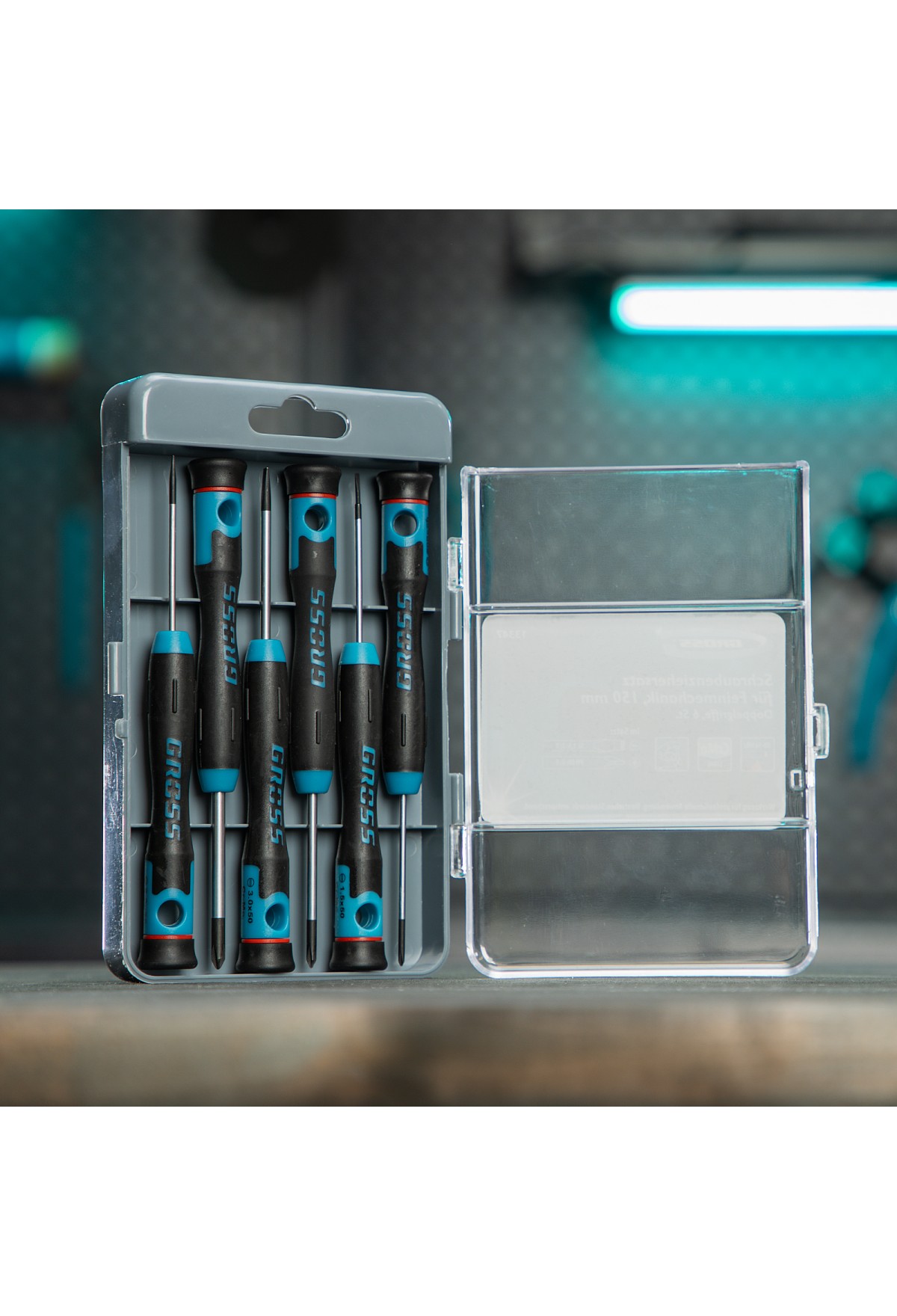 • Набор отверток для точной механики, CrMo, двухкомпонентные рукоятки, 6 шт, пластиковый бокс Gross