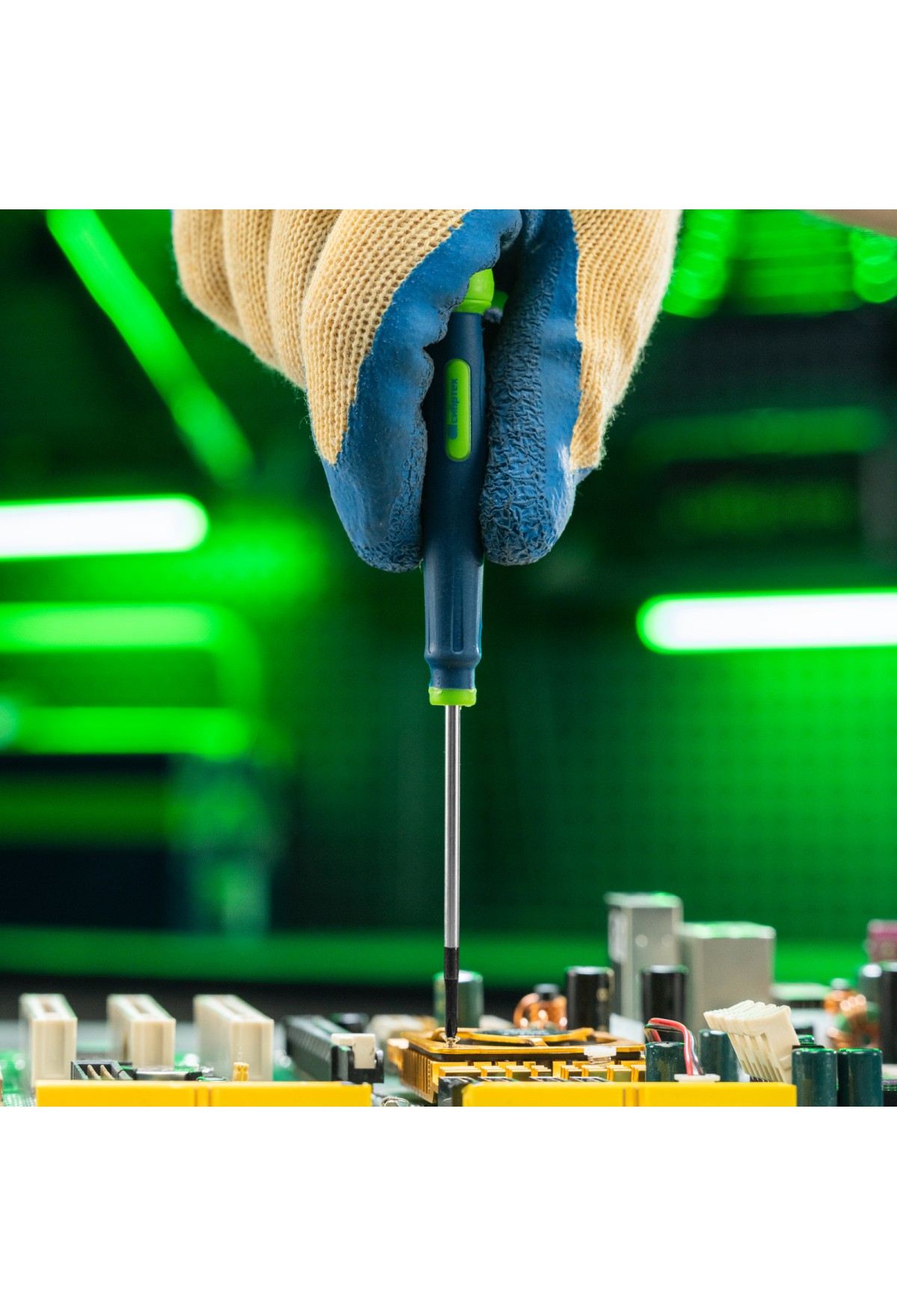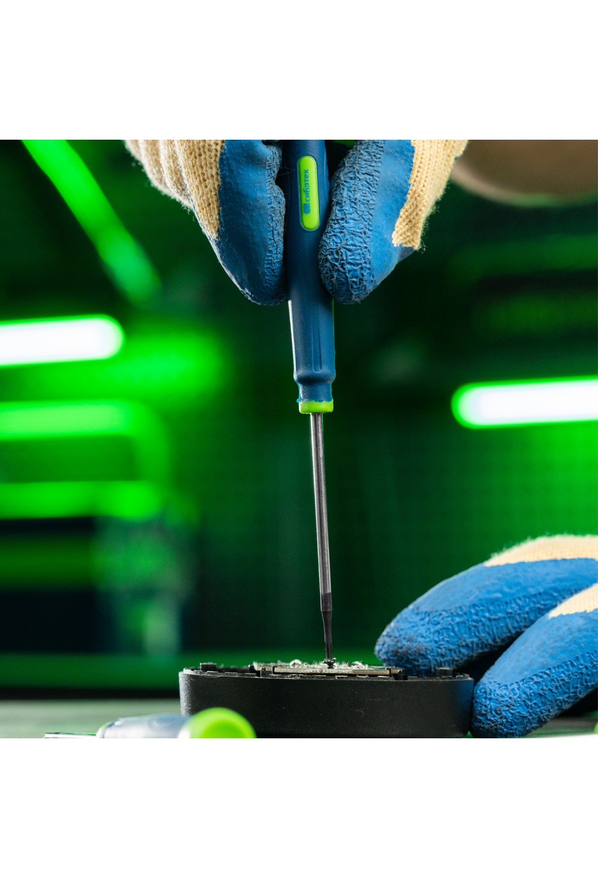 - Высокое качество исполнения — стержни отверток изготовлены из прочной хромованадиевой стали.