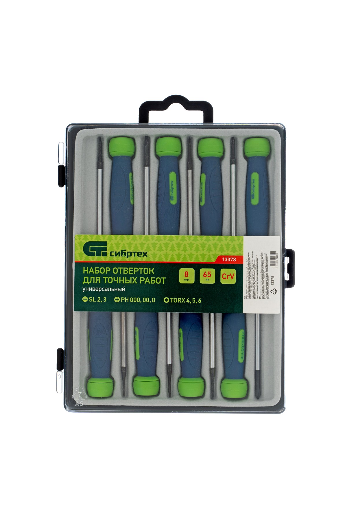 Универсальный набор отверток Сибртех 13378 включает 8 инструментов из стали CrV и рассчитан на полупрофессиональное использование при проведении точных работ. Отвертками можно закручивать и откручивать микровинты типа SL, PH и TORX, поэтому они пригодятся для ремонта мелкой бытовой техники, электроники, детских игрушек и других устройств.
