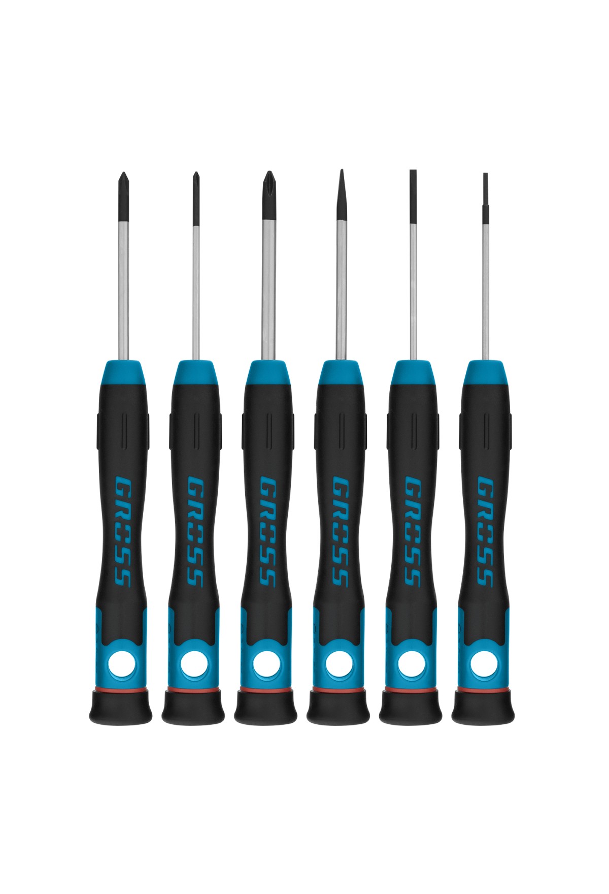 Набор отверток для точной механики, CrMo, двухкомпонентные рукоятки, 6 шт, пластиковый бокс Gross