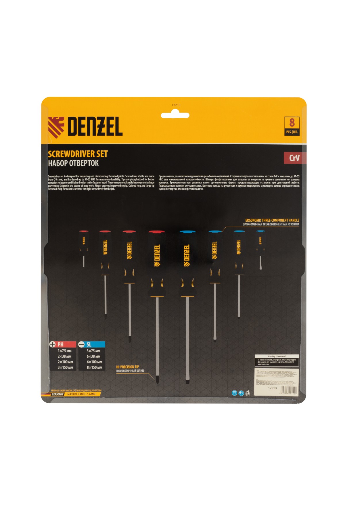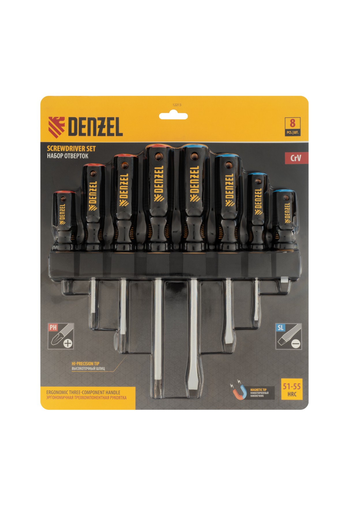 Тэги: Набор отверток, 8 пр., CrV, трехкомпонентная рукоятка Denzel, VR6-12213, DENZEL, VR6, VR6-Отвертки, VR6-Отвертки (наборы), VR6-Слесарный инструмент